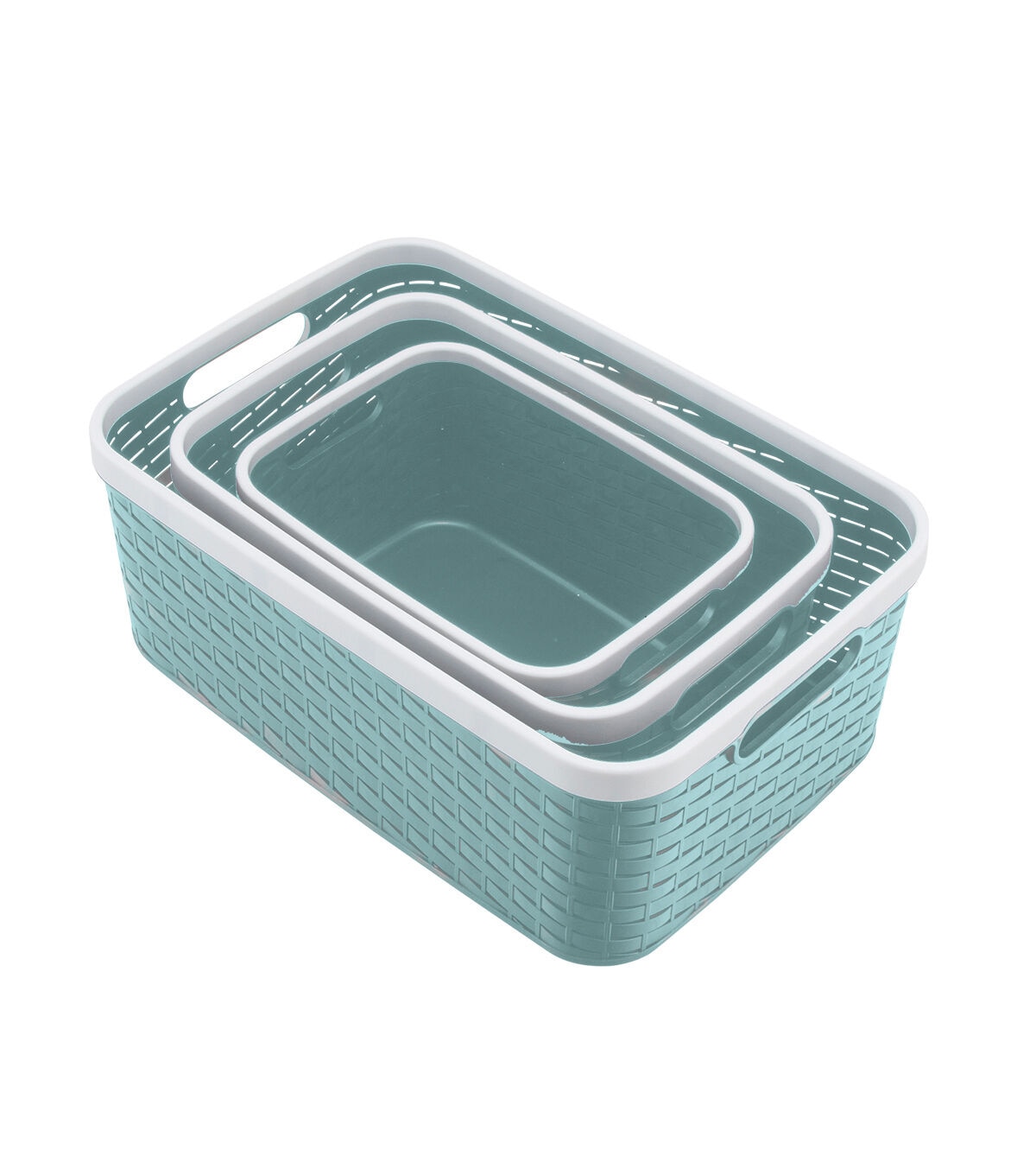 Storage needs can be as unpredictable as the weather in May. Organize large amounts of clutter in a matter or minutes with the Nantucket Weave Bins. Utilize the bins to best suit your organizational needs with the three different sizes of bins. Find a spot for your paints, paper, or even your favorite craft scraps.