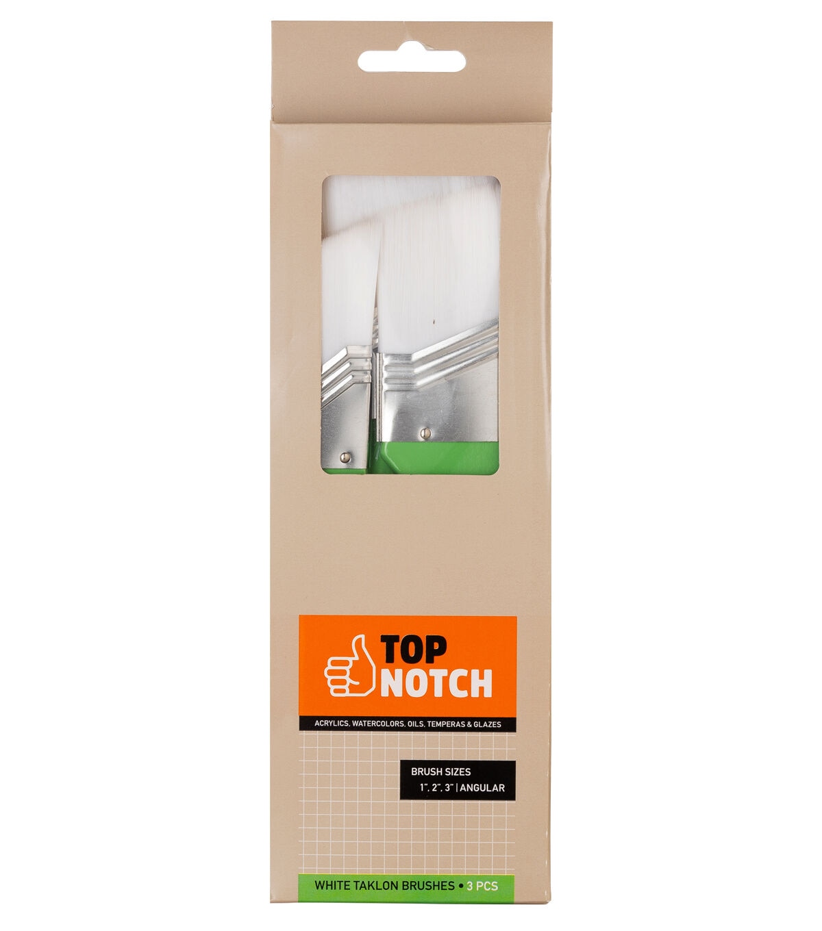 The White Taklon Long Angular Brushes by Top Notch will make a great gift for an artist in your life. This pack contains white Taklon brushes with angular bristles. These brushes come in three different sizes and are ideal for working with acrylics, watercolors, tempera, oil paints and glazes. They hold their shape and are great for adding thick strokes of paint.