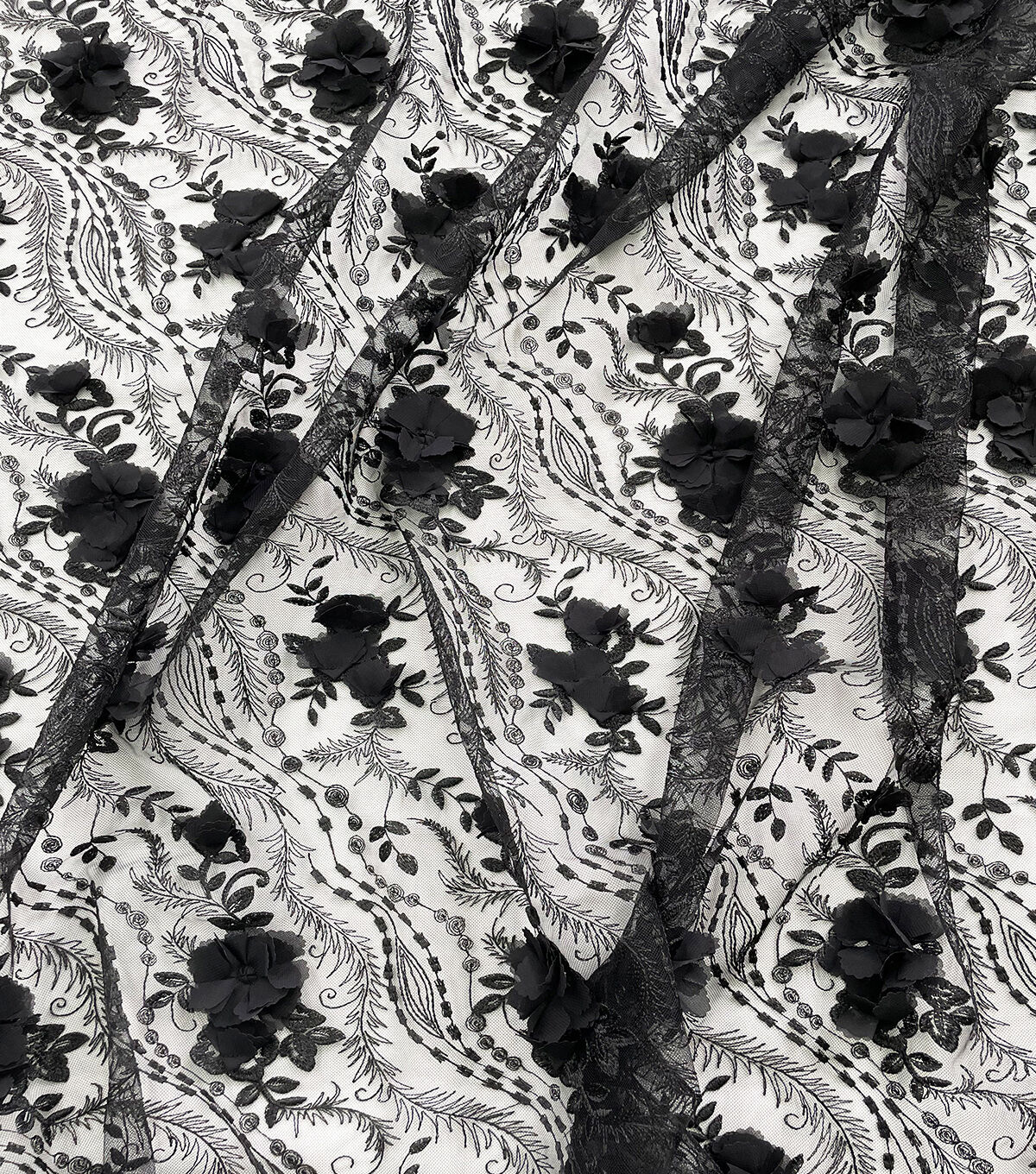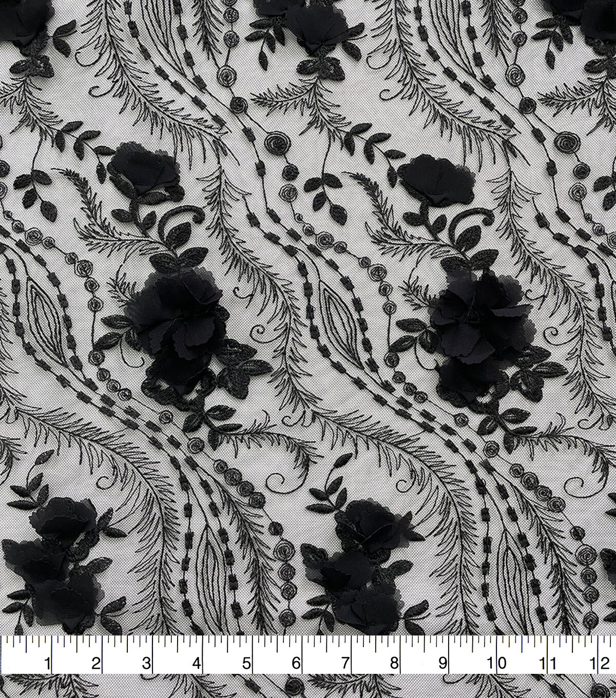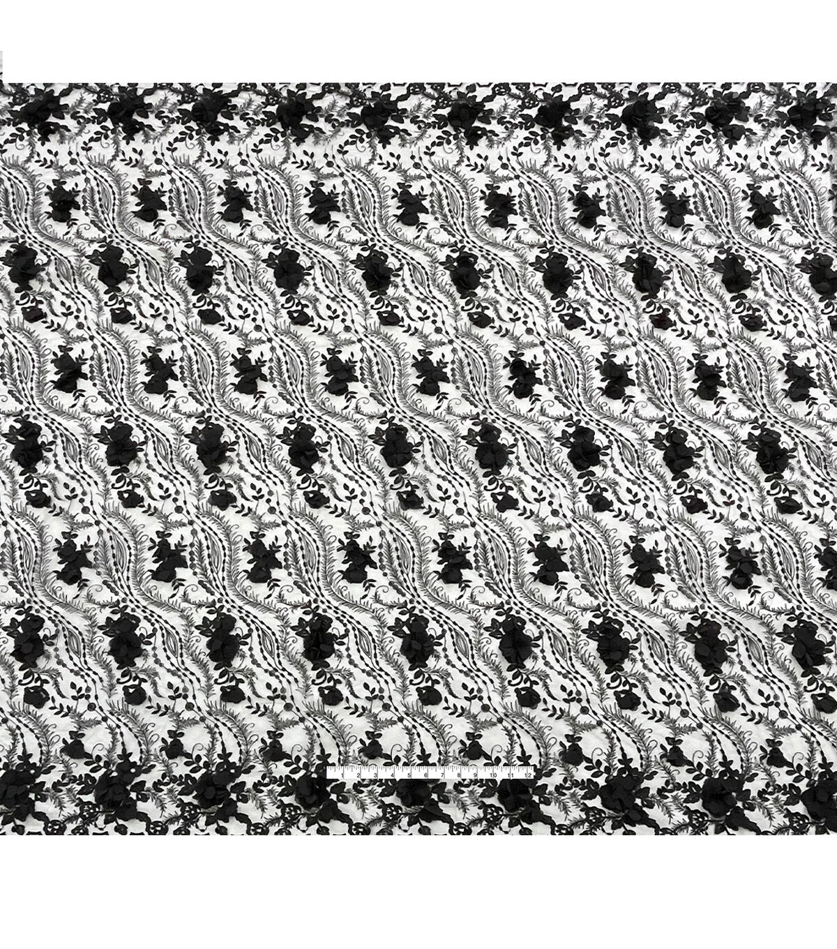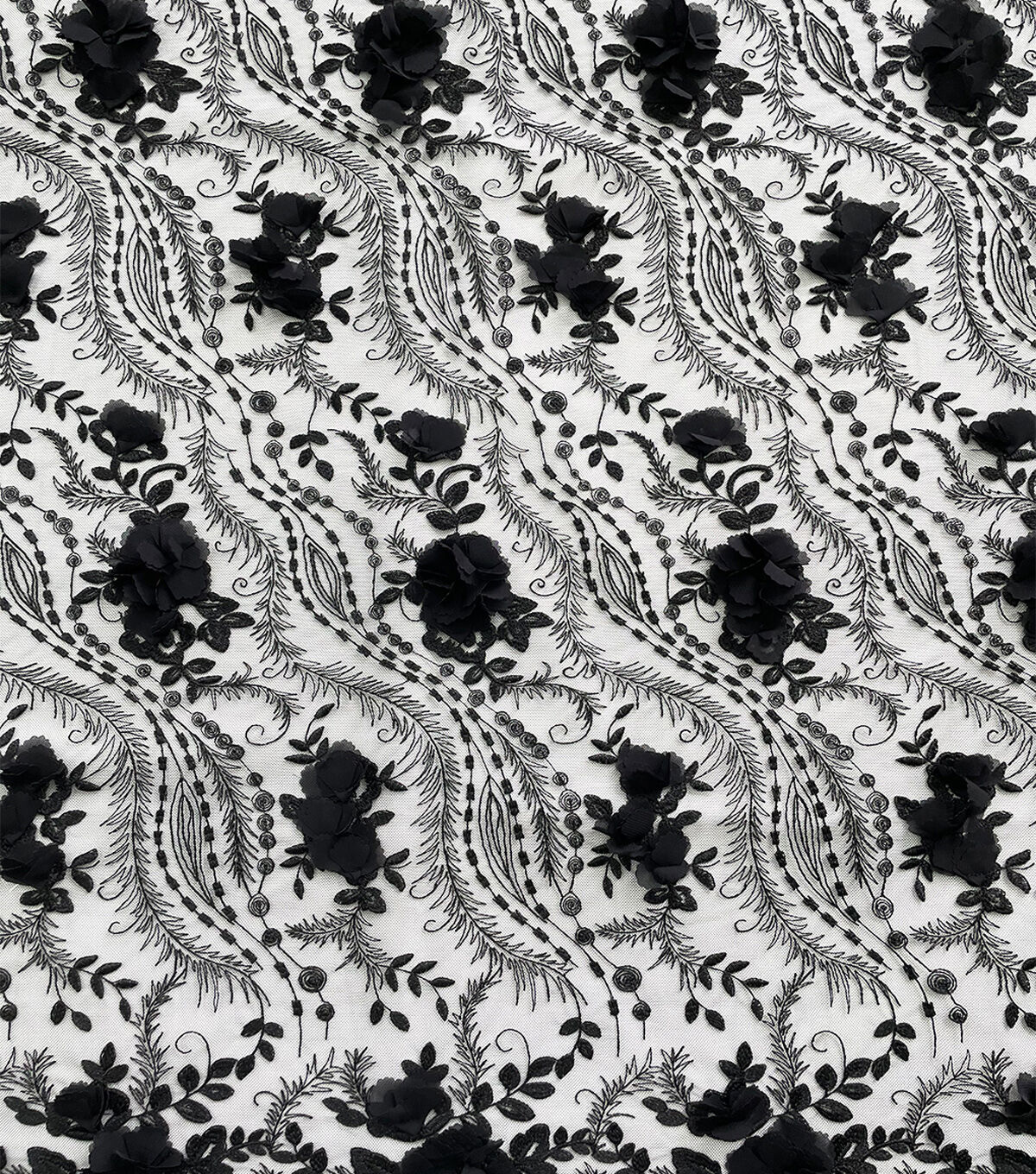 • 3D Floral Allover Mesh Embellished Black Fabric