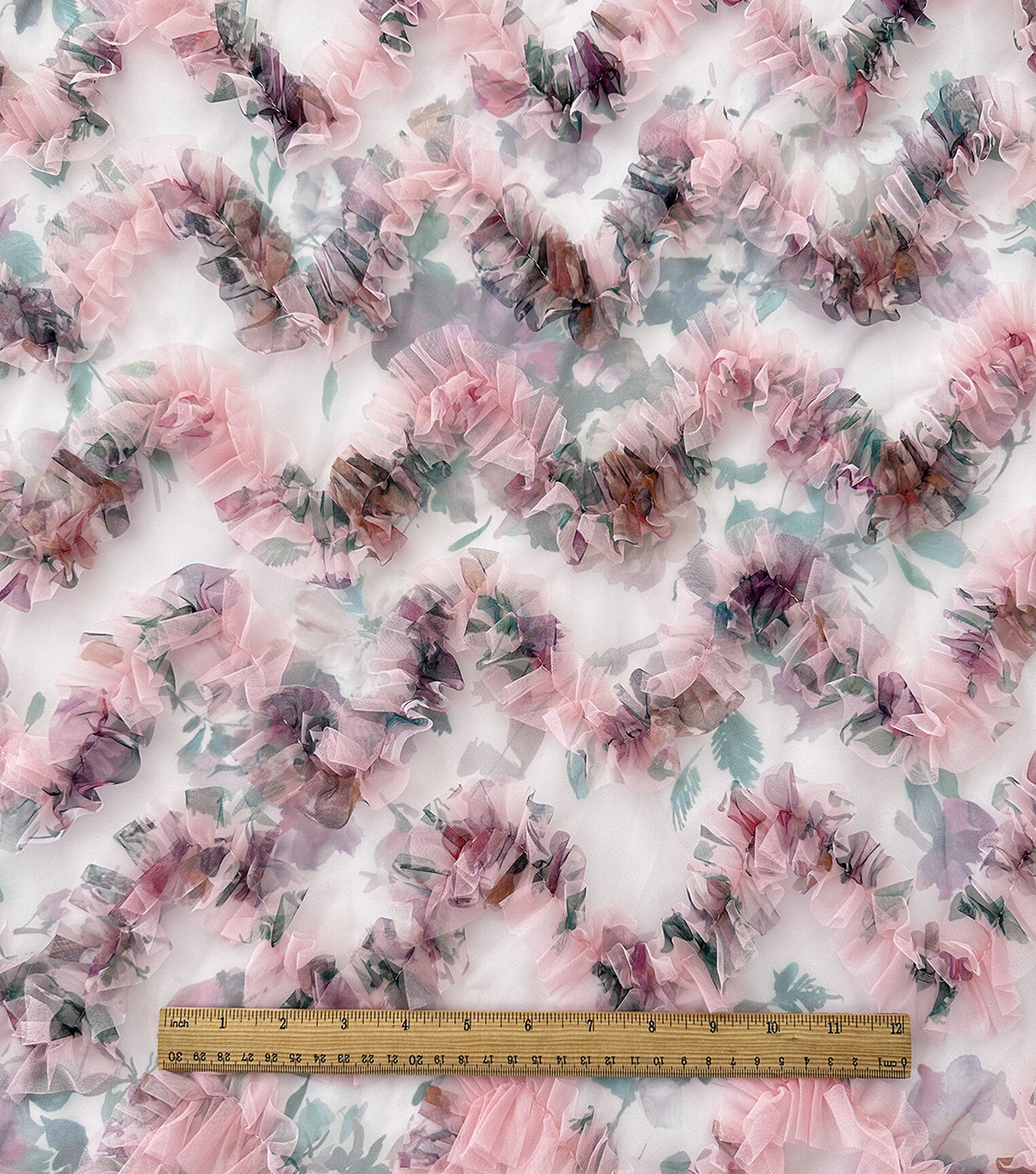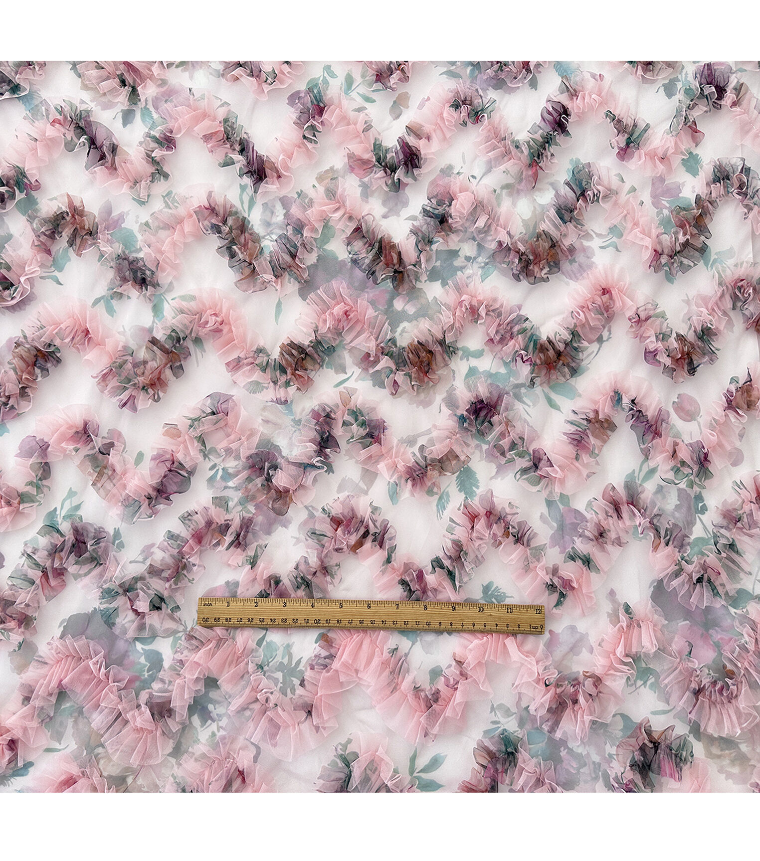 Get Creative with Sew Sweet's 3D Pink Floral Ruffle Mesh Fabric