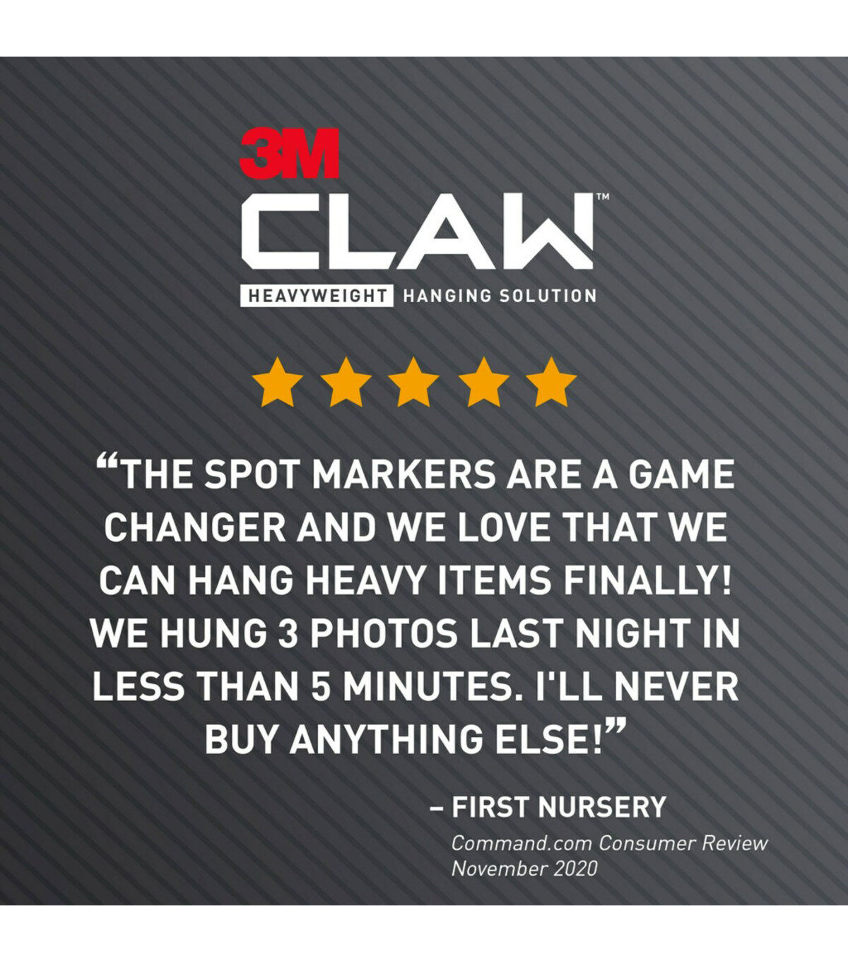 - INCLUDES – 1 3M CLAW Drywall Picture Hanger + 1 Spot Marker, designed for heavyweight mirrors, frames, and home décor