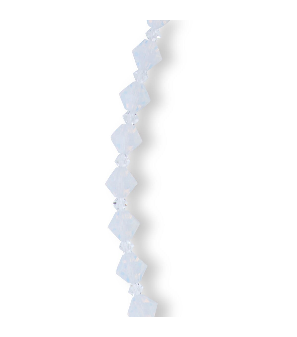 The hildie & jo Preciosa Bicone Glass Bead Strand - Opal White will add a touch of elegance to your jewelry designs. This pack contains a strand of milky, opal white bicone beads with alternating tiny clear crystal bicone spacer beads. Combine them with coordinating beads, chains and other jewelry elements into your own unique and creative designs.