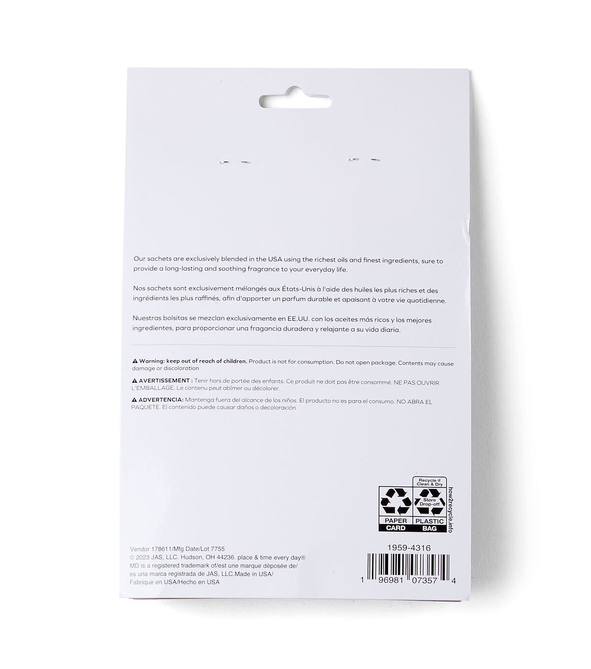 3pk Scented Paper Sachet Pouch by Place & Time