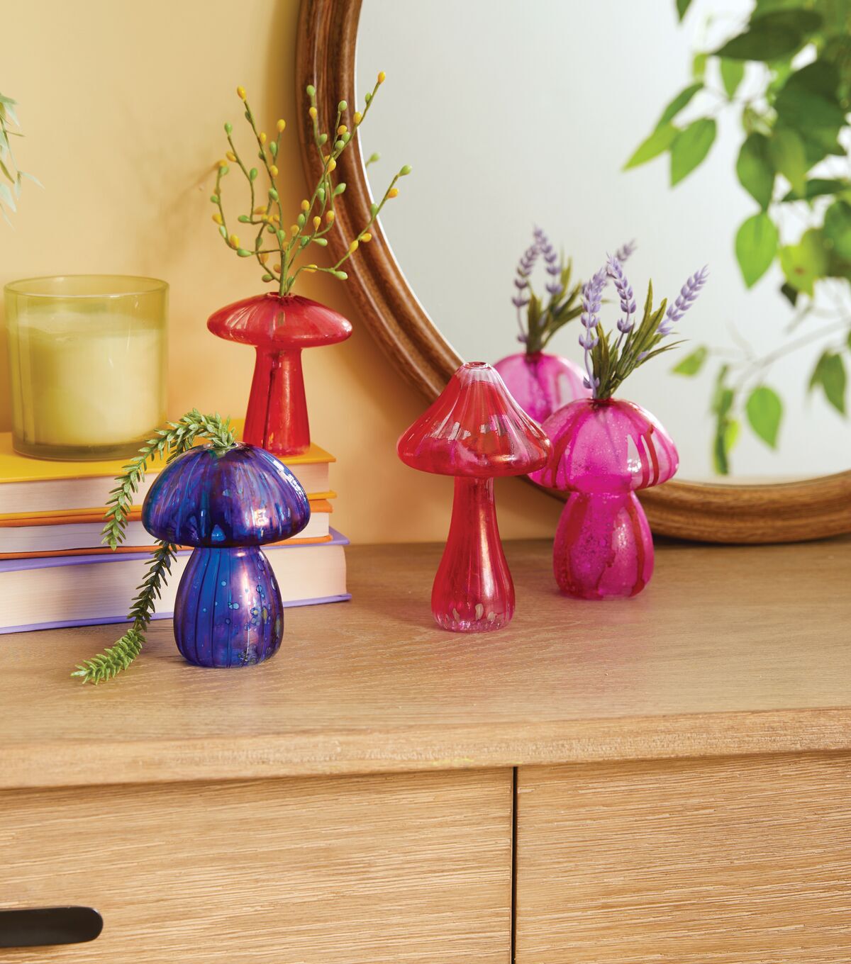 Take your crafting skills to a new level with the Clear Glass Mushroom Vase by Place & Time. This unfinished vase is made of glass and shaped like a mushroom. All you need to do is to add a dash of color to it. Display the finished version as is on a tabletop or pop faux floral picks into it.