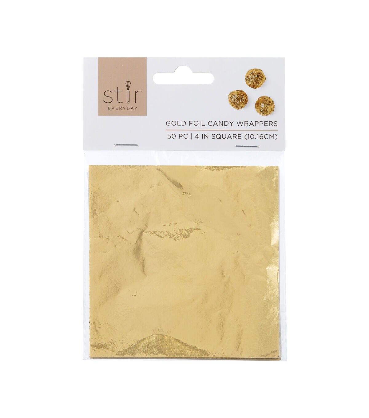Lend the perfect finishing touch to your homemade candies and chocolates with the STIR Everyday Square Candy Foil Wrappers - Gold. This pack comes with 50 pieces of square foil wrappers in a lovely gold tone. Use them to keep the sweet treats fresh and protected from moisture. Chocolates wrapped in these wrappers will make a lovely addition to the gift basket of a loved one.
