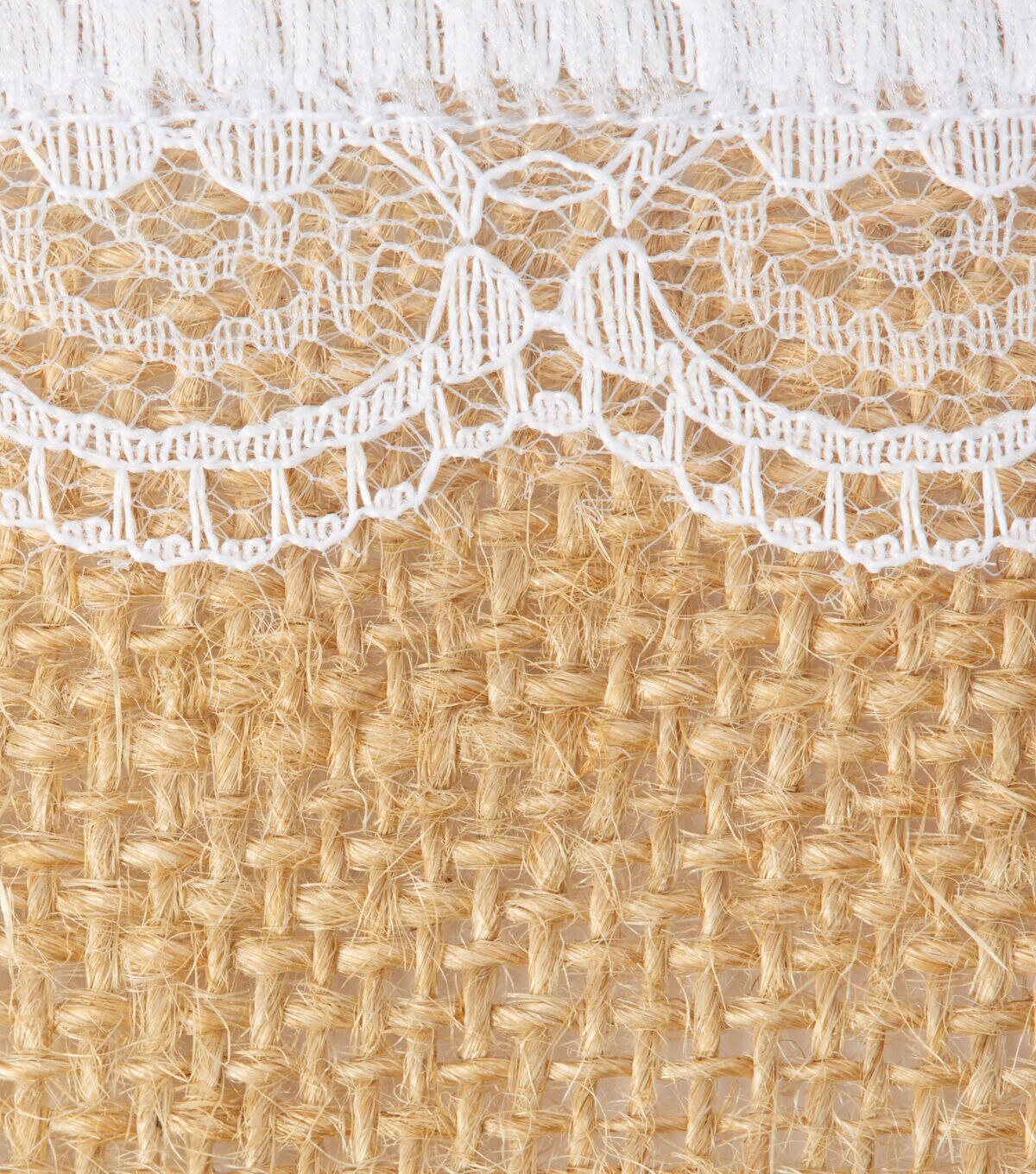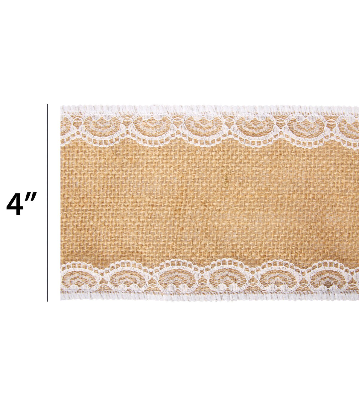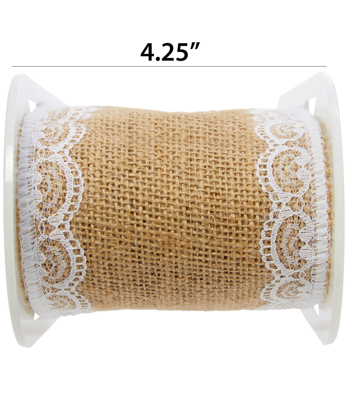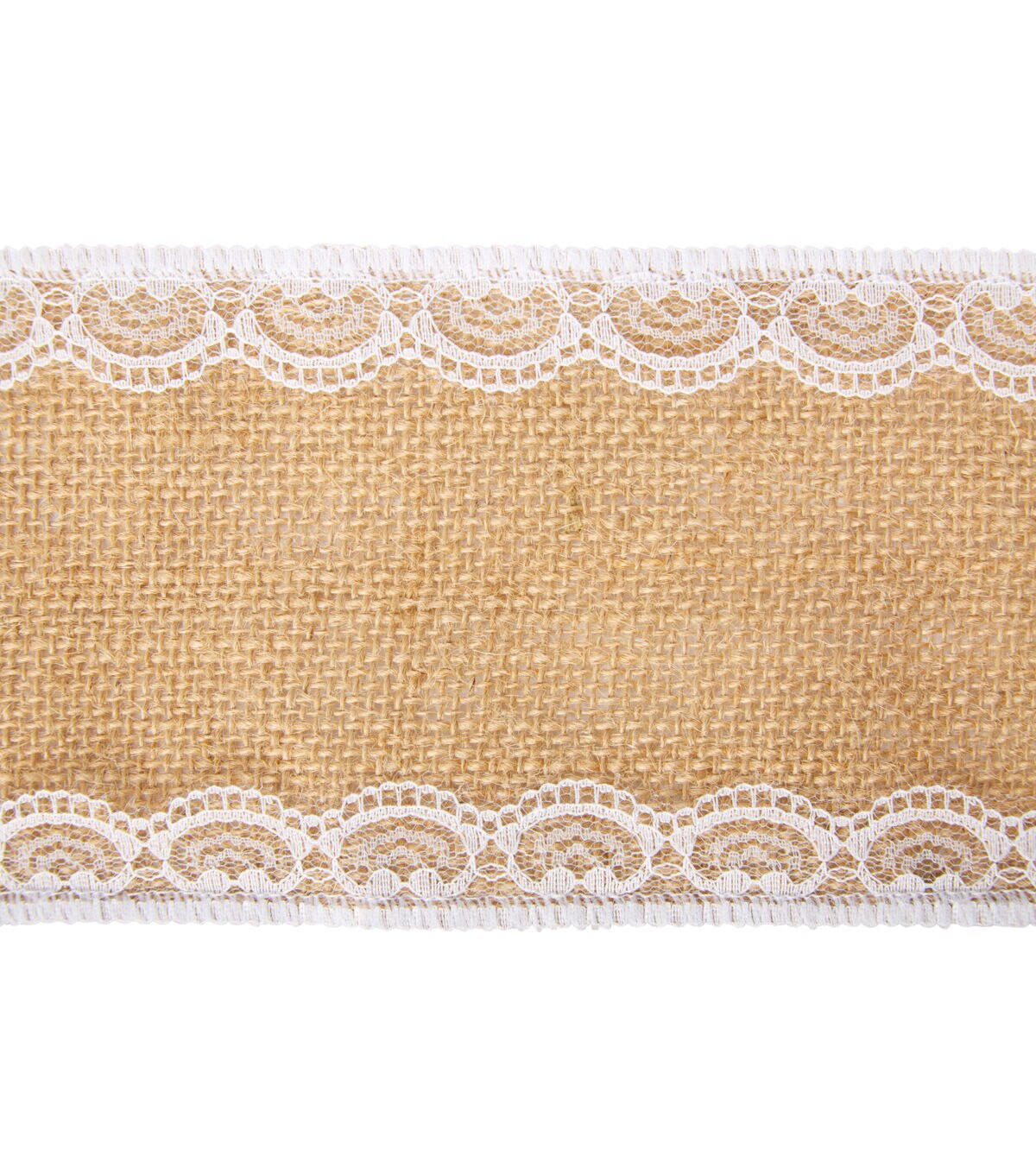 Simplicity 4 inch Jute with White Heart Lace Trim. Finish your sewing and fabric projects in style with this trim. It is perfect to embellish pillow covers, lampshades, cushion covers, apparel, totes and more.