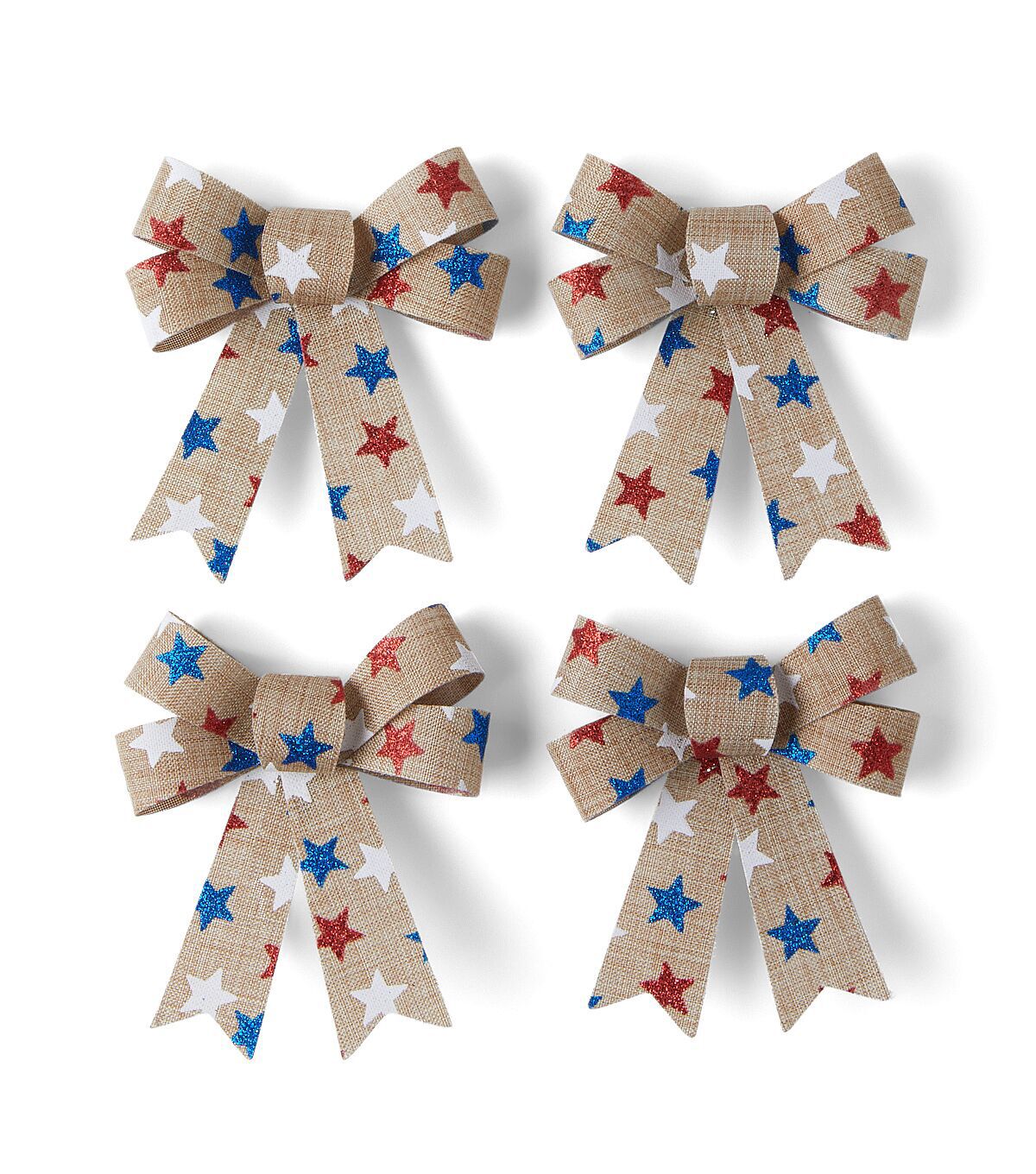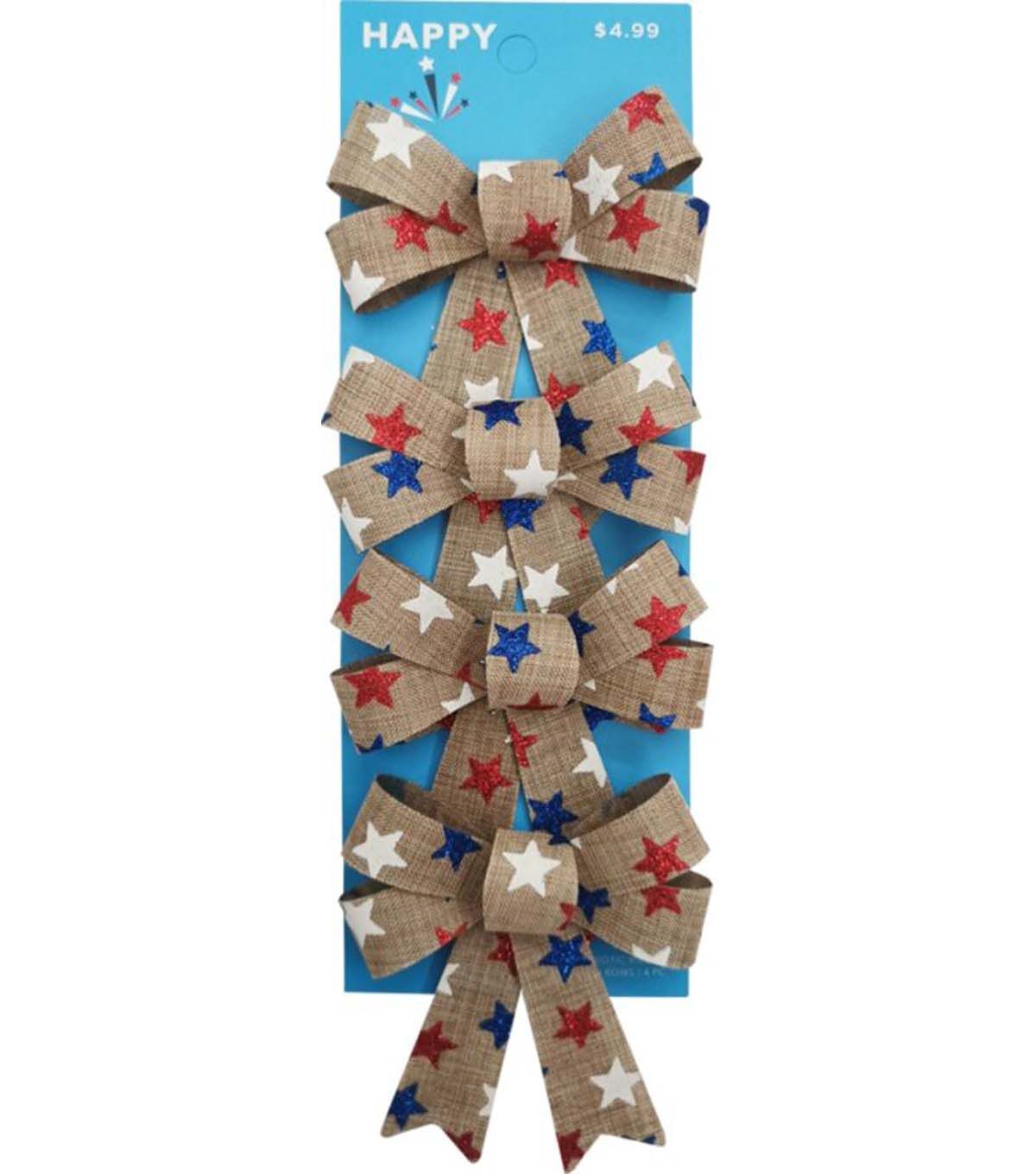 Get Ready to Celebrate with Happy Patriotic 4" Stars on Natural Burlap Bows 4pk