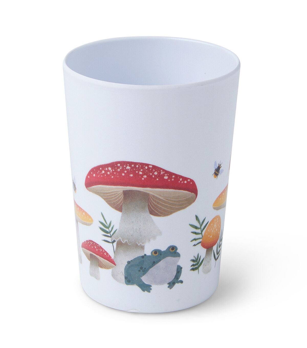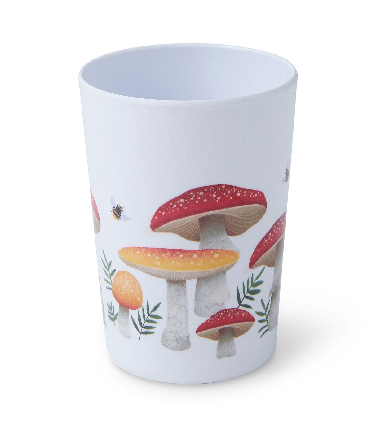 Relish your favorite beverage from the Spring Red Mushrooms on White Tumbler by Place & Time. This melamine tumbler in white sports a print of mushrooms, leaves and bees in lovely vibrant hues. It will make a great addition to your spring-themed drinkware collection. You can also make it a part of the gift basket for a dear one.