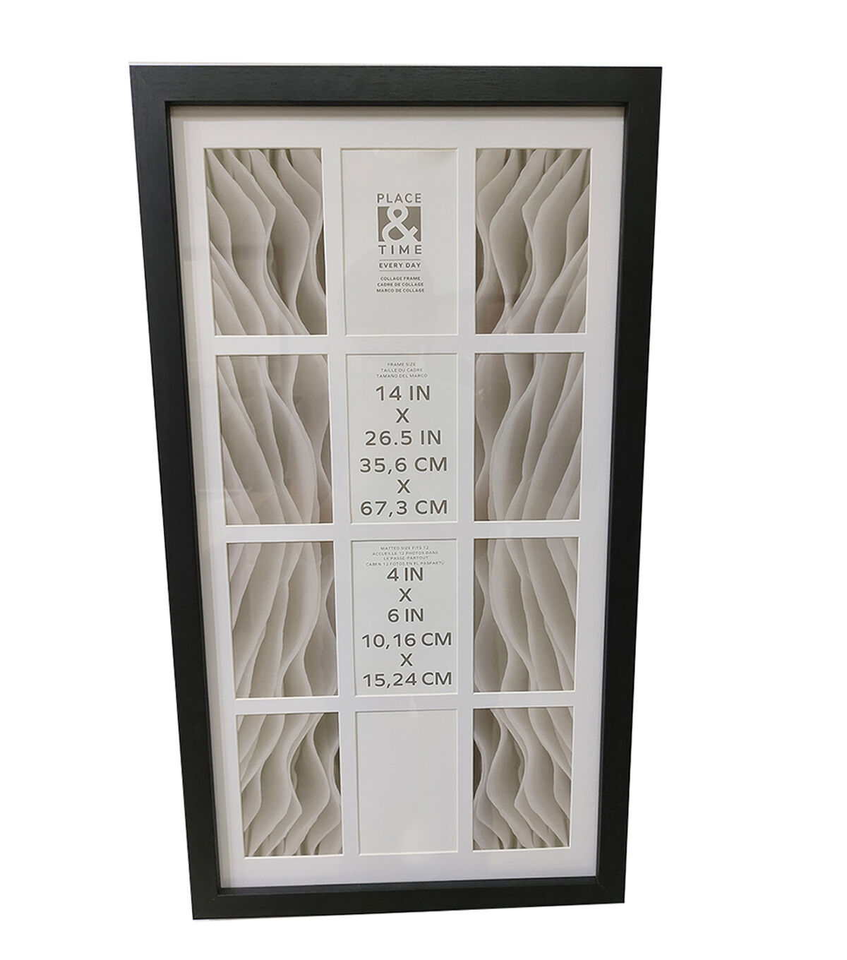 Display your favorite pictures in the attractive Black 12 Photo Collage Frame by Place & Time. Sporting a black hue and simple design, this collage frame will instantly add a chic look to your home decor. You can use it to display 12 photos. Adorn it with ribbons for added appeal. It will also make a great housewarming gift for a friend.