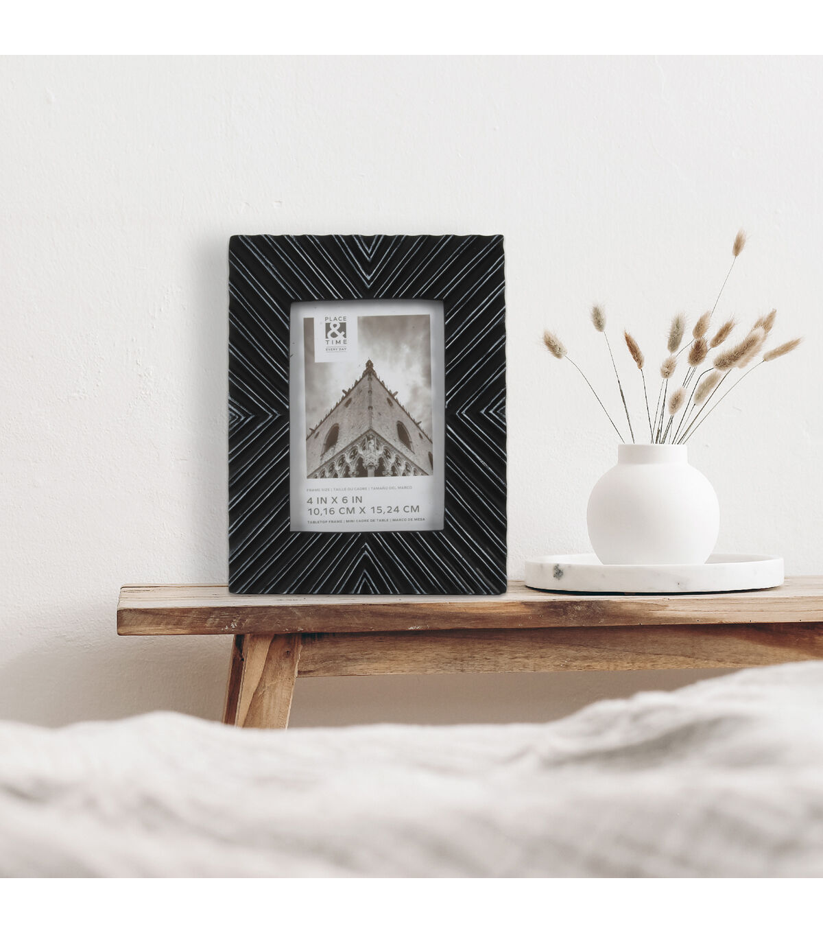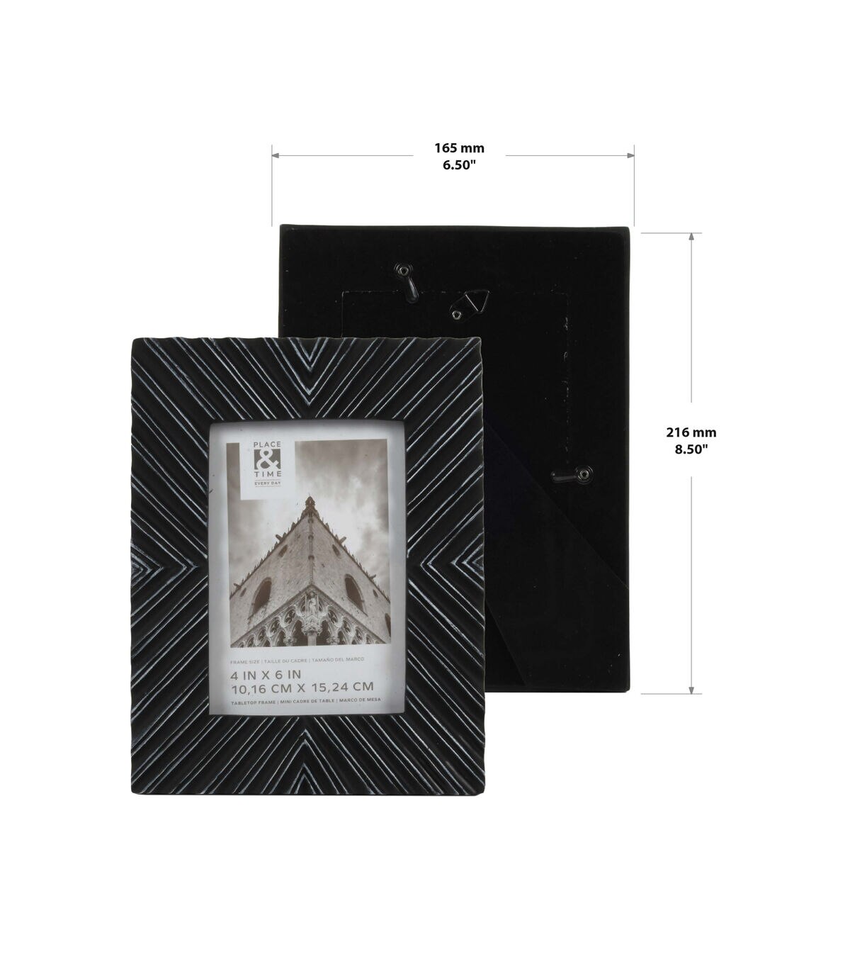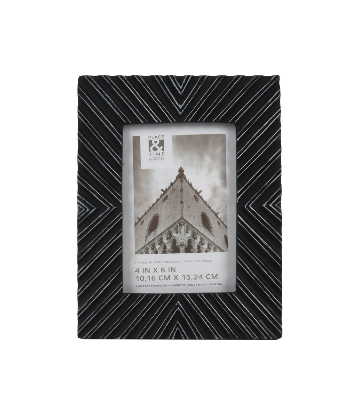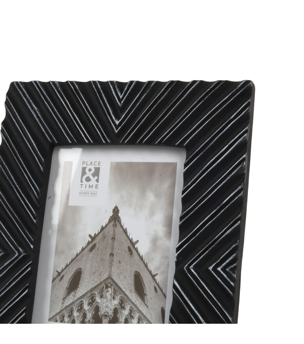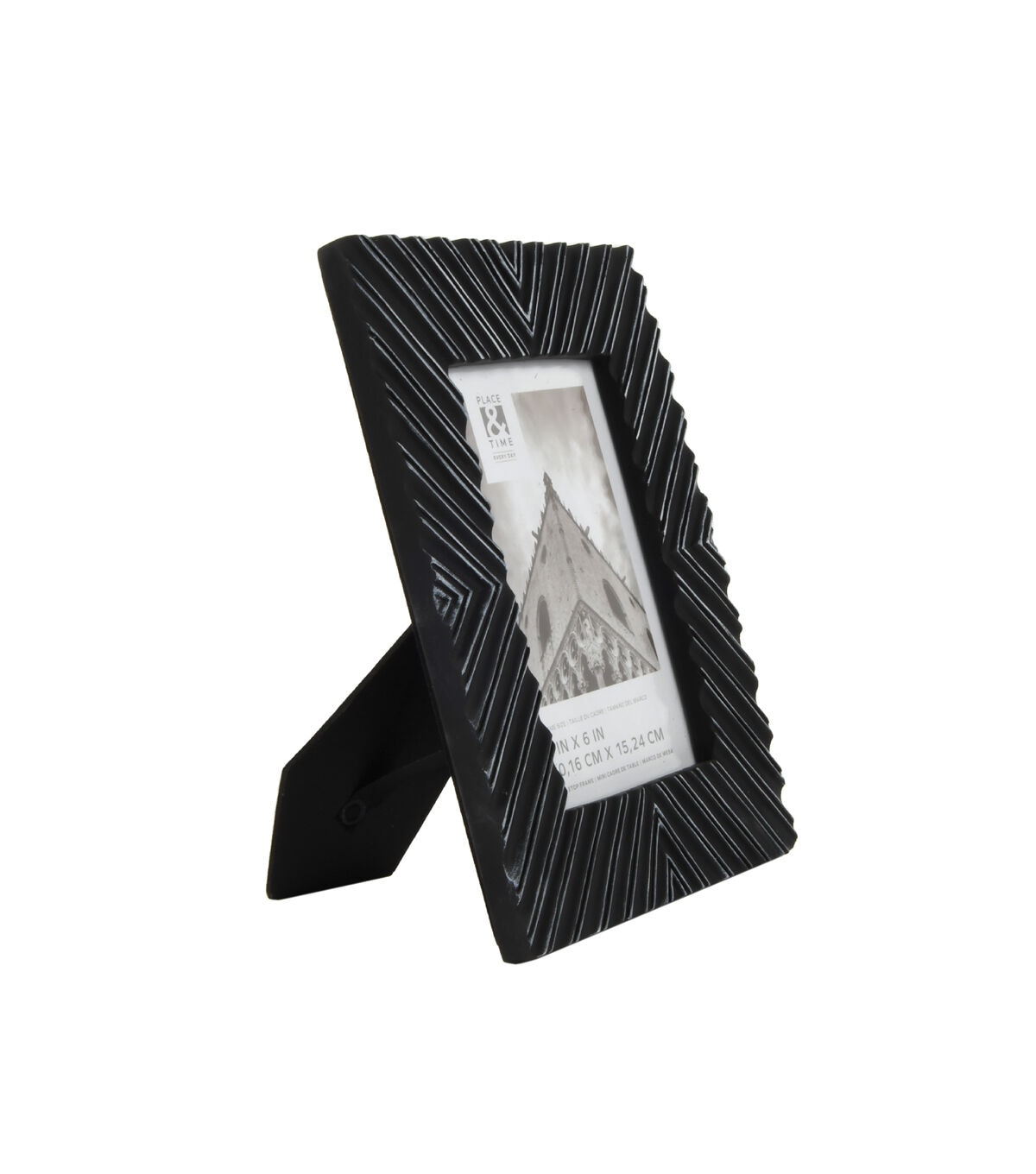 Crafted with a matte finish that resembles glazed ceramic, this stylish sculpted picture frame is the perfect addition to any modern, eclectic, or transitional home decor. The chic black frame is fashioned from high-quality resin and accented with white to accentuate the beautiful design details. This lovely frame is ready to highlight your most cherished four-inch by six-inch photo on the wall or a tabletop and includes a multi-directional easel for vertical or horizontal display. Features a backloaded design with clear glass secured by easy-open tabs that make inserting your photographs or prints easy.
