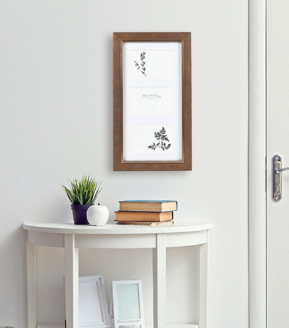 Bring classic simplicity and style to your home with this 3-Opening Two-Tone Wood Picture Frame. Crafted from real wood with a medium brown finish, accented with metallic gold inset, and acid-free white matboard, this beautiful frame is the perfect finishing touch in any modern or contemporary home. The photo frame holds three standard 4 x 6-inch photographs, versatile design allows for horizontal or vertical wall mounting.