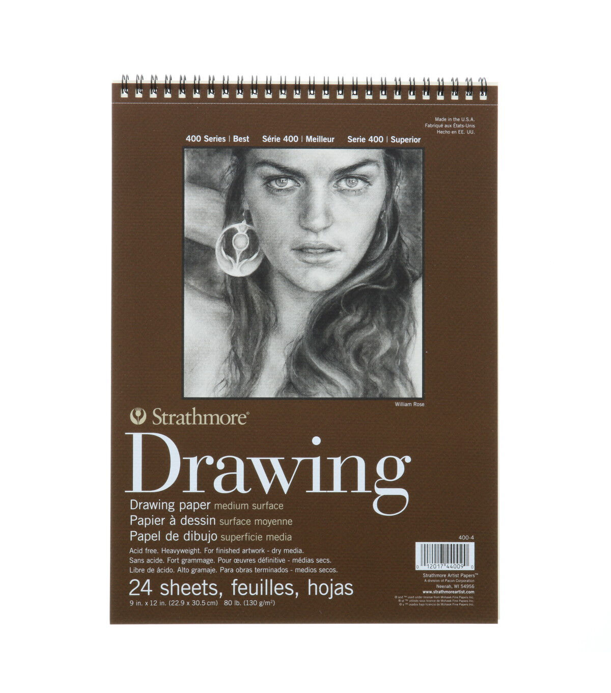 Strathmore-Medium Surface Drawing Paper. Paper with a medium surface ideal for mastering dry media drawing techniques. This package contains one 12x9 inch spiral bound drawing pad with twenty-four sheets of 80lb acid free drawing papers. Made in USA.