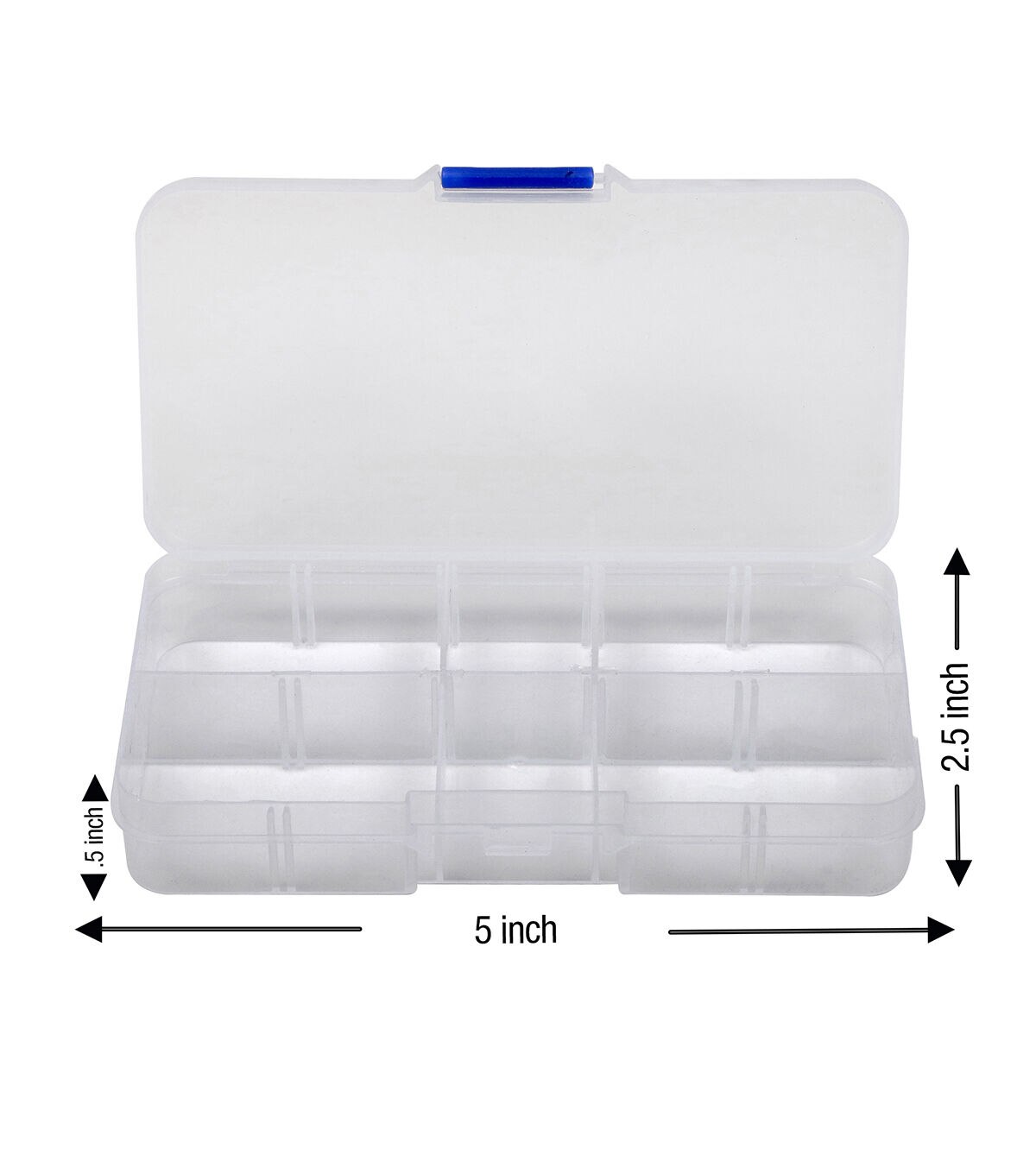 - Reusable 2.5” by 5” storage case is made from clear plastic and includes 4 compartments to keep colors separated