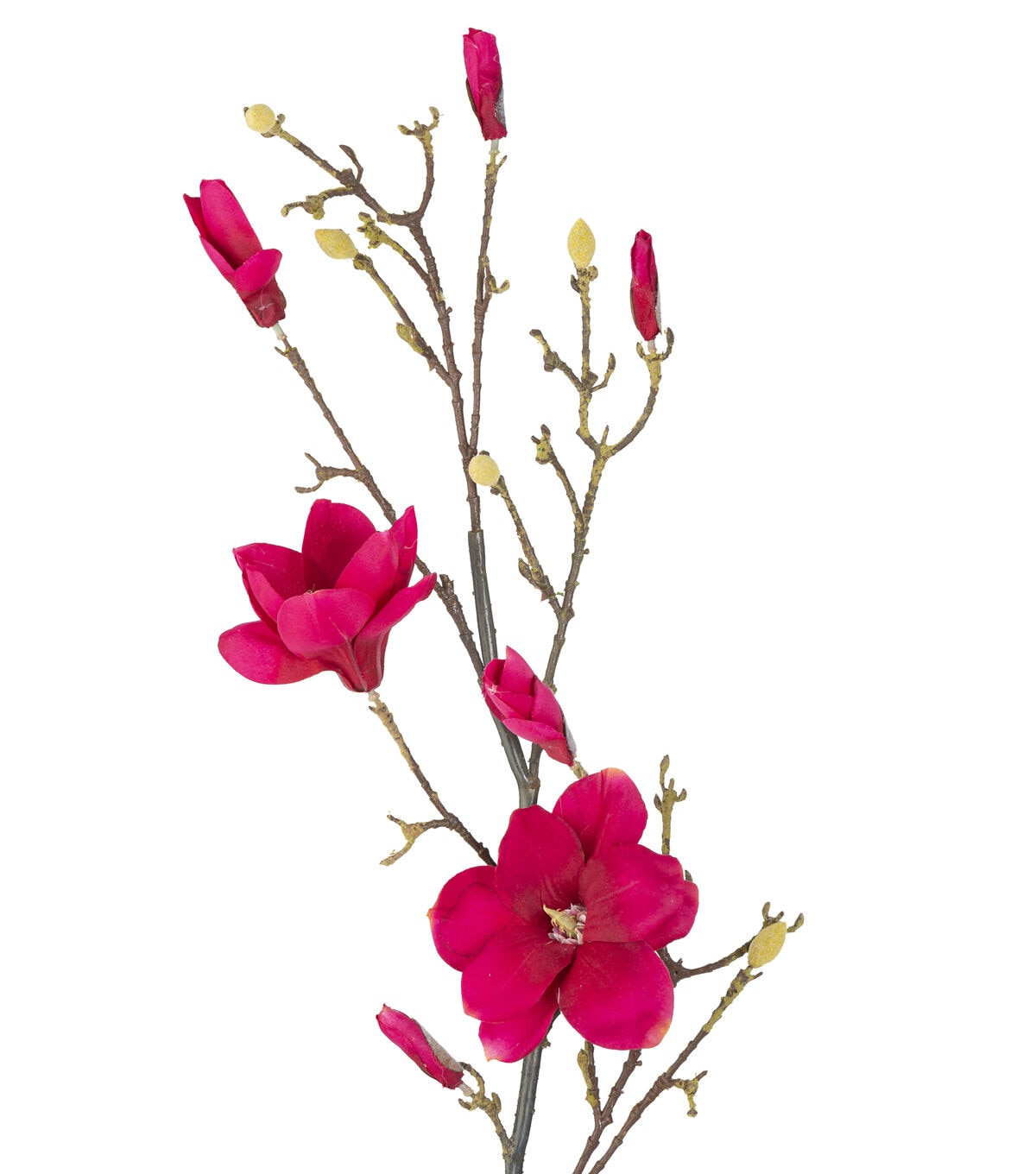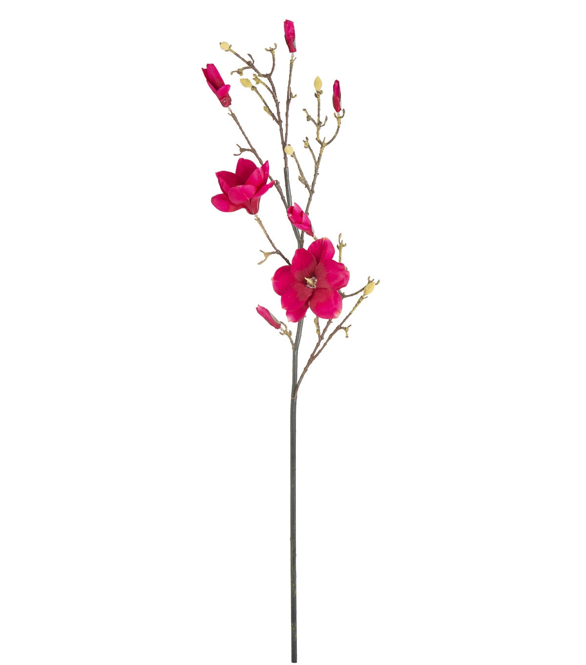 Use the Bloom Room Magnolia Spray - Red as filler for a seasonal floral arrangement. This faux floral spray bears lifelike magnolia flowers in a lovely red color. It is crafted with realistic details, and will stand out in your faux floral arrangements. You can combine it with peony and dahlia stems to put together a colorful floral centerpiece.
