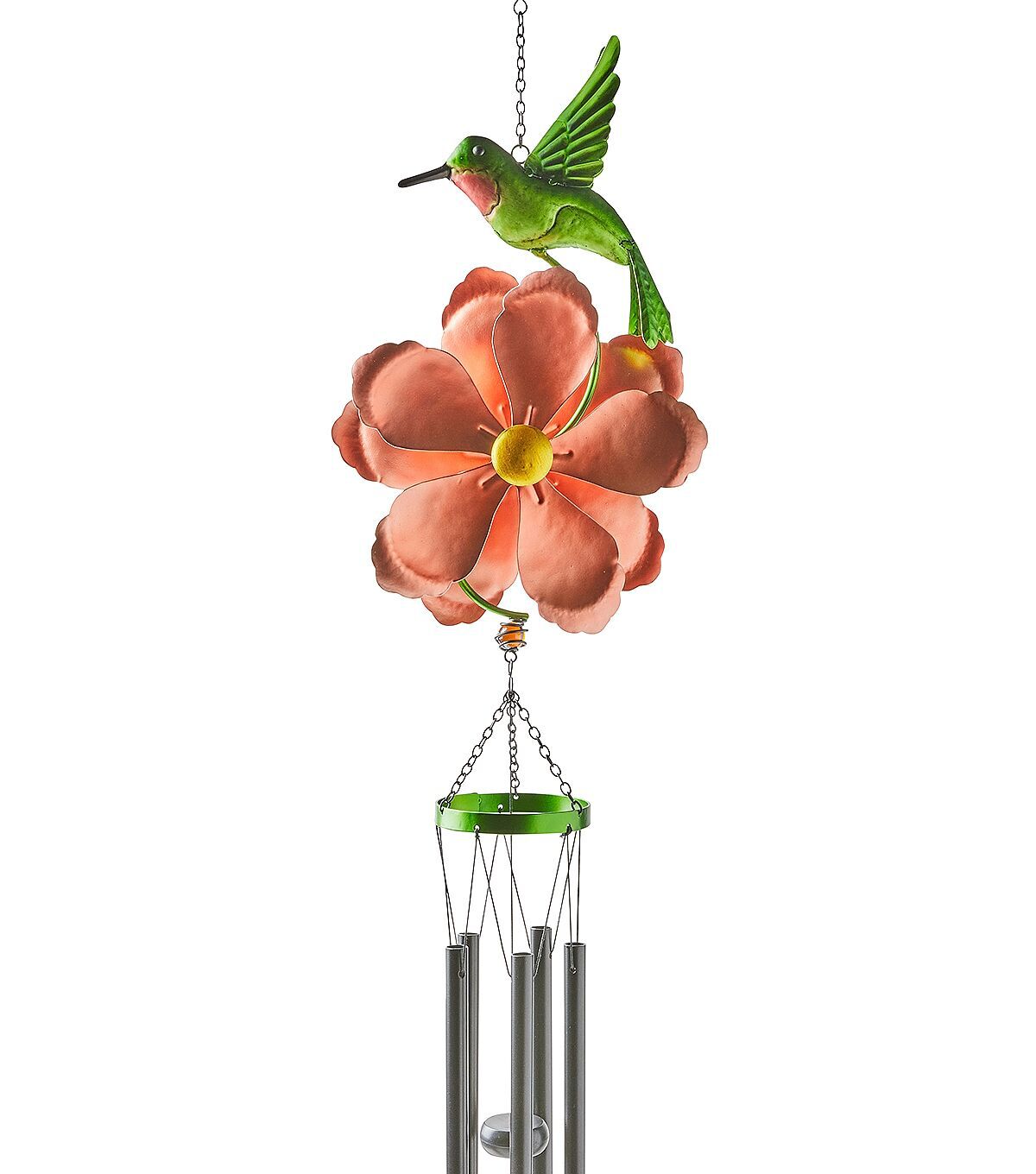 Lend a unique twist to your seasonal decor with the Spring Orange Flower Spinner Windchime by Place & Time. This wind chime is crafted with accents shaped like a flower with a bird on top. It flaunts lovely hues and will look beautiful on the porch or patio. You can also display it by a window in your living room.