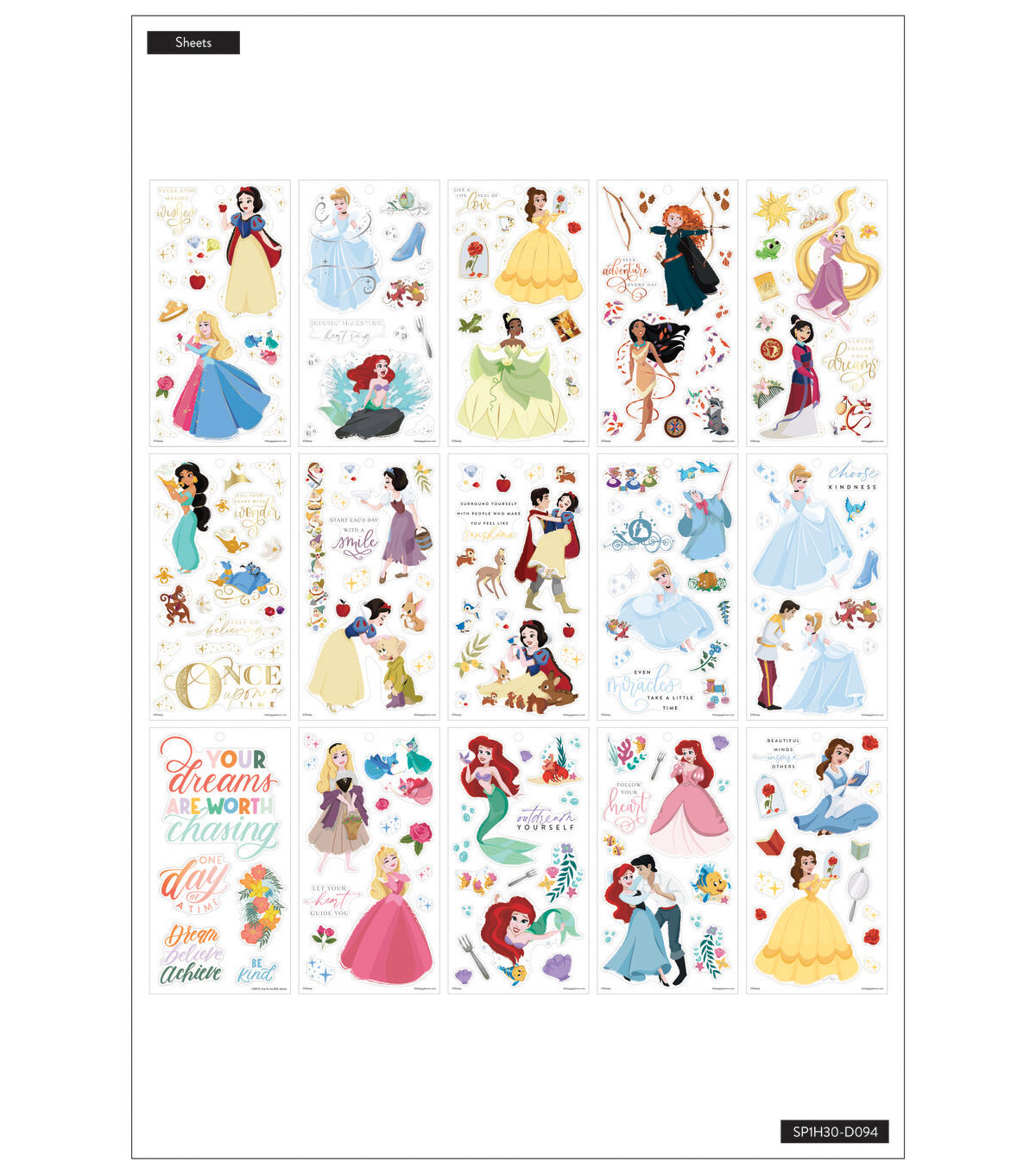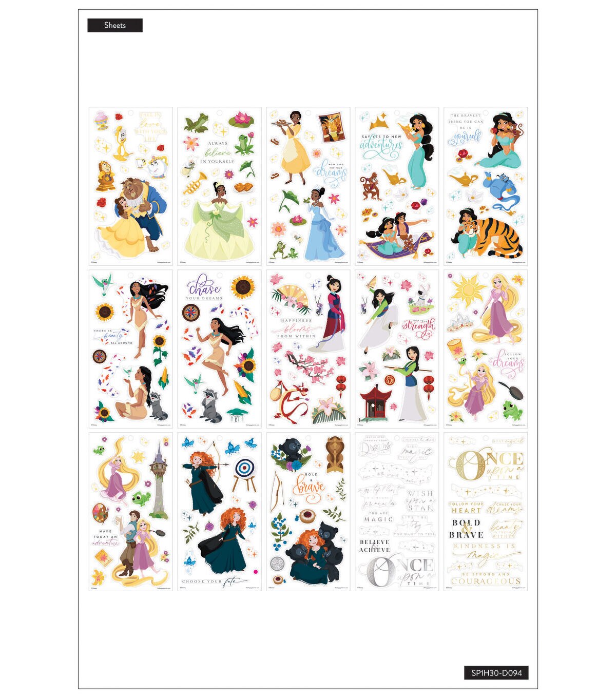 Follow your dreams and seek new adventures. These large Disney Princess stickers will give you inspiration along the way.