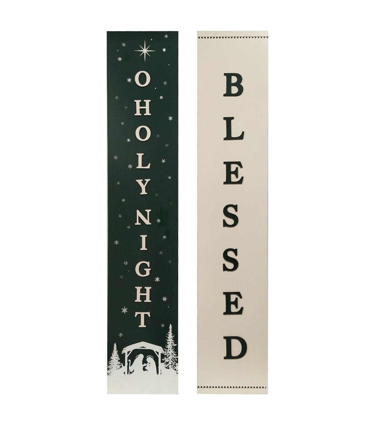 Add the Christmas O Holy Night Double Sided Porch Sign by Place & Time to your holiday decor supplies. It sports a print of the phrase ‘O Holy Night’ on one side and ‘Blessed’ on the other in contrasting shades. You can team this double-sided wooden porch sign with adorned tree arrangements to usher in Christmas vibes.