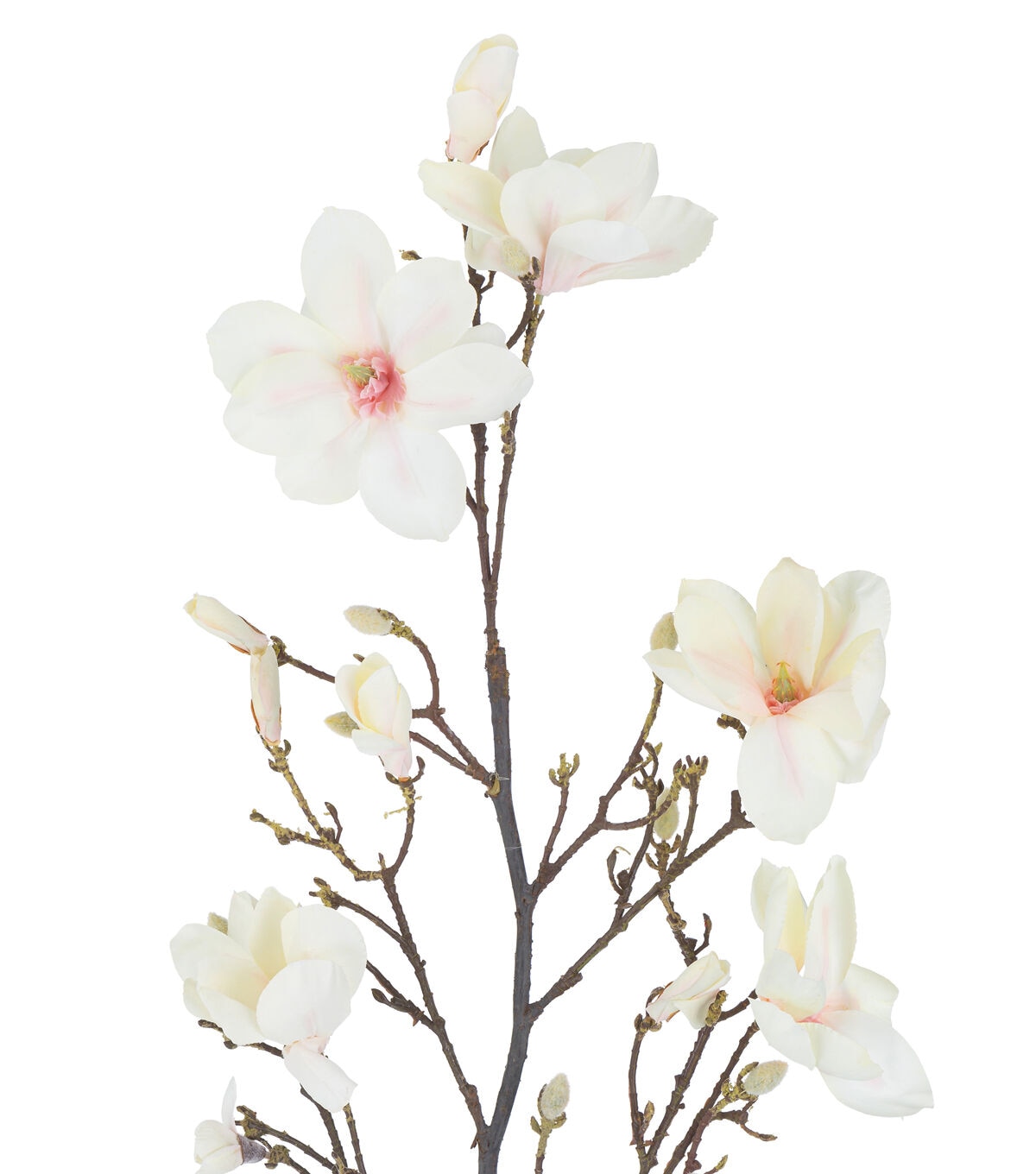 Use the Bloom Room Magnolia Spray - Ivory as filler for a seasonal floral arrangement. This faux flower spray features lifelike magnolia flowers in a lovely ivory shade. It is crafted with realistic details, and will stand out in your faux floral arrangements. You can combine it with peony and dahlia stems to put together a colorful floral centerpiece.