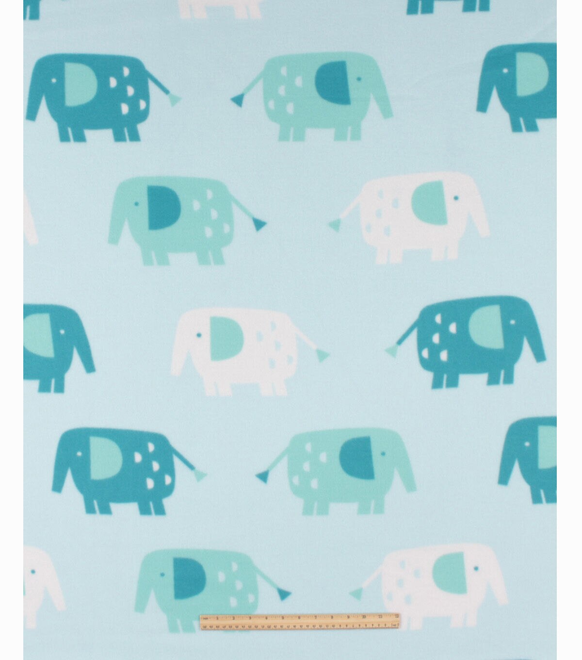 48" Wide Aqua Elephants on Blue No Sew Fleece Blanket By Make It Give It