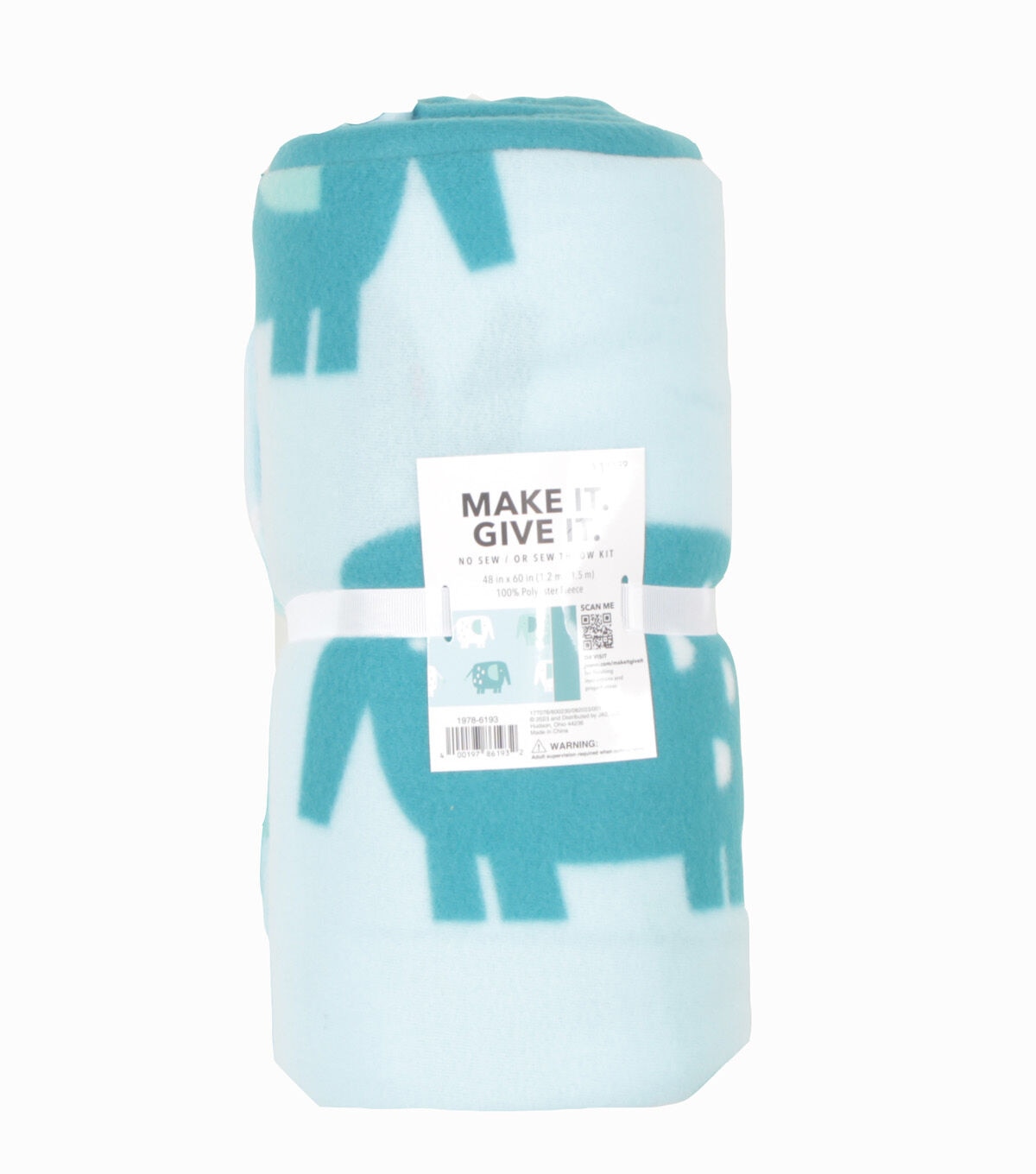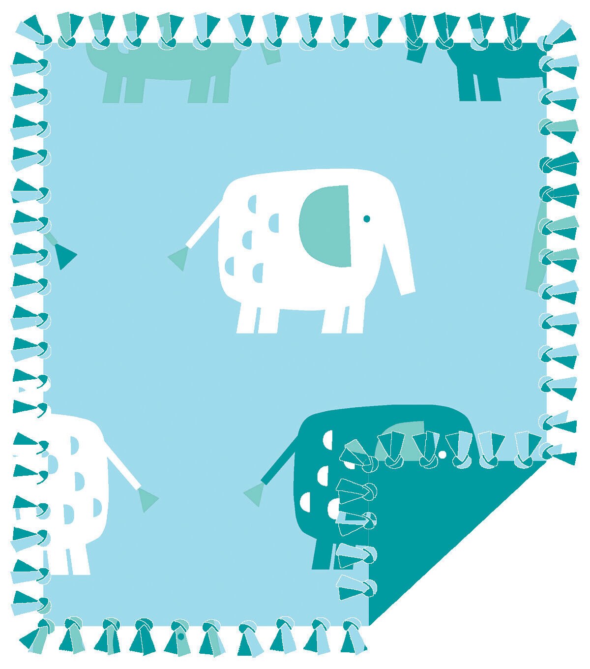 • 48" Wide Aqua Elephants on Blue No Sew Fleece Blanket By Make It Give It