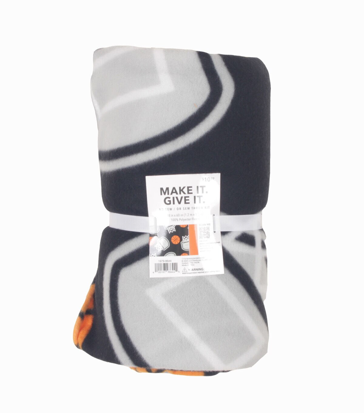 • 48" Wide Basketball on Black No Sew Fleece Blanket by Make It Give It