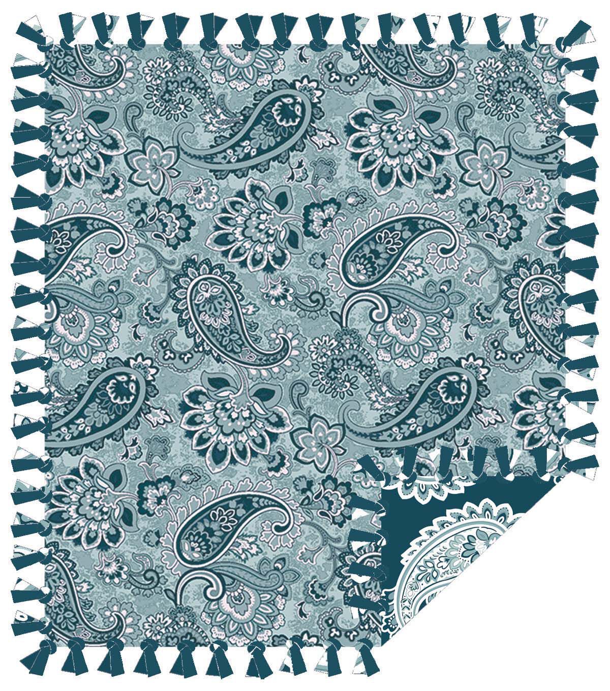 Stay Cozy with the 48" Wide Blue Pretty Paisley No Sew Fleece Blanket