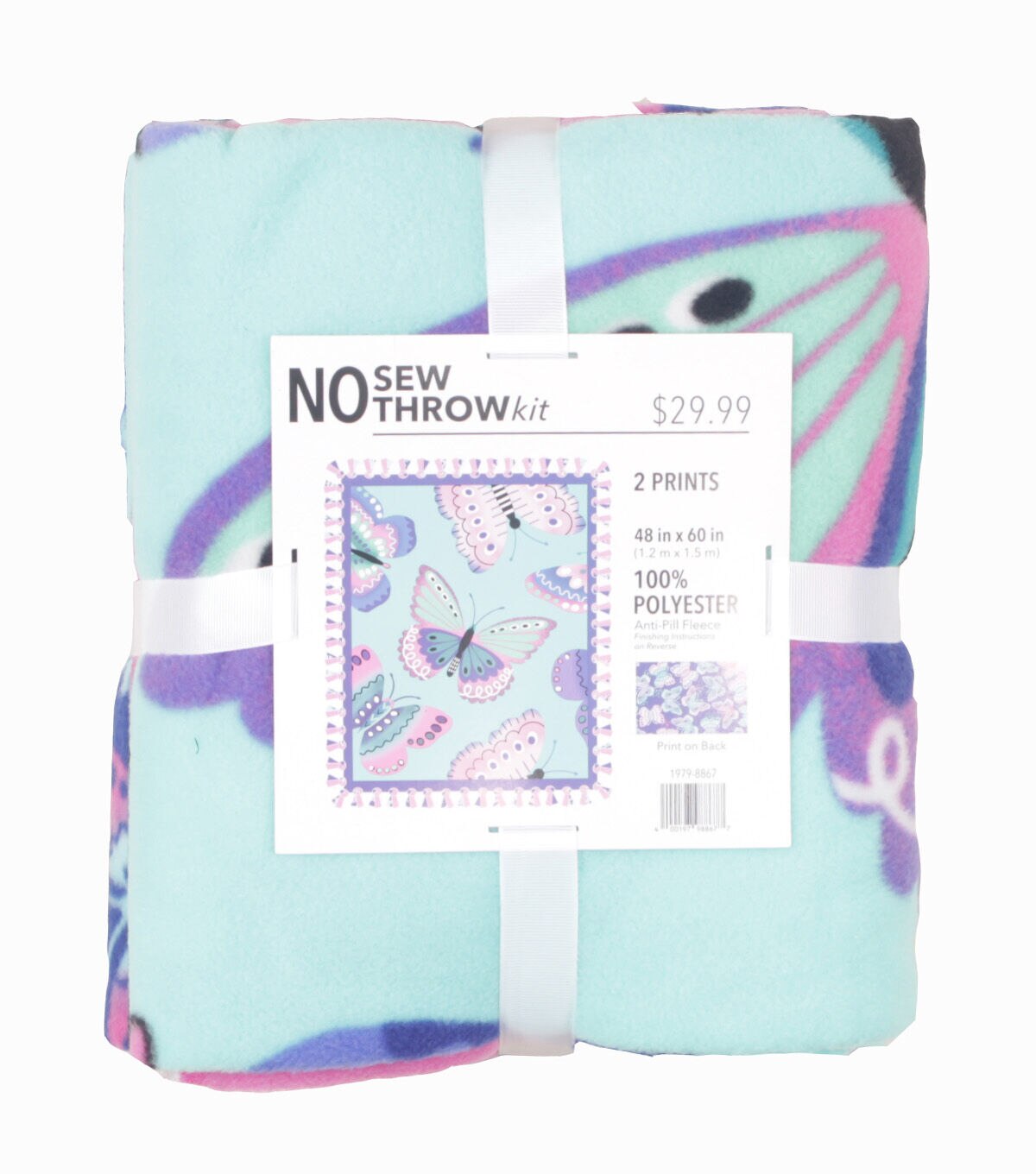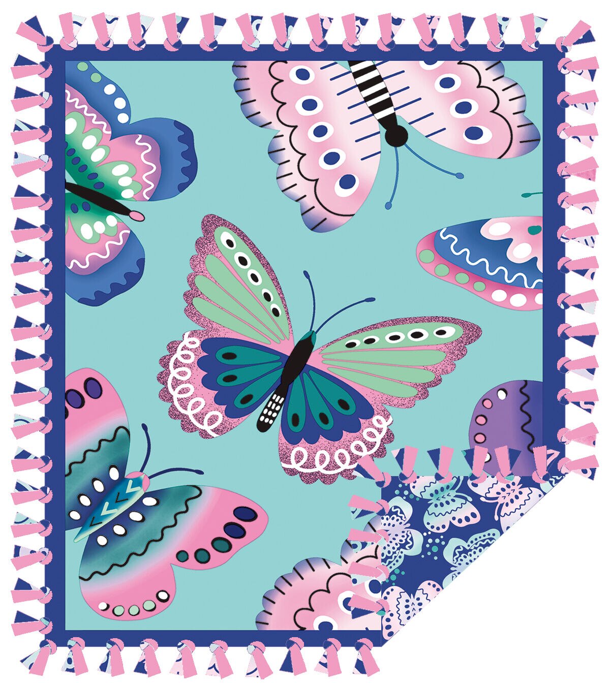 • 48" Wide Butterflies on Teal No Sew Fleece Blanket