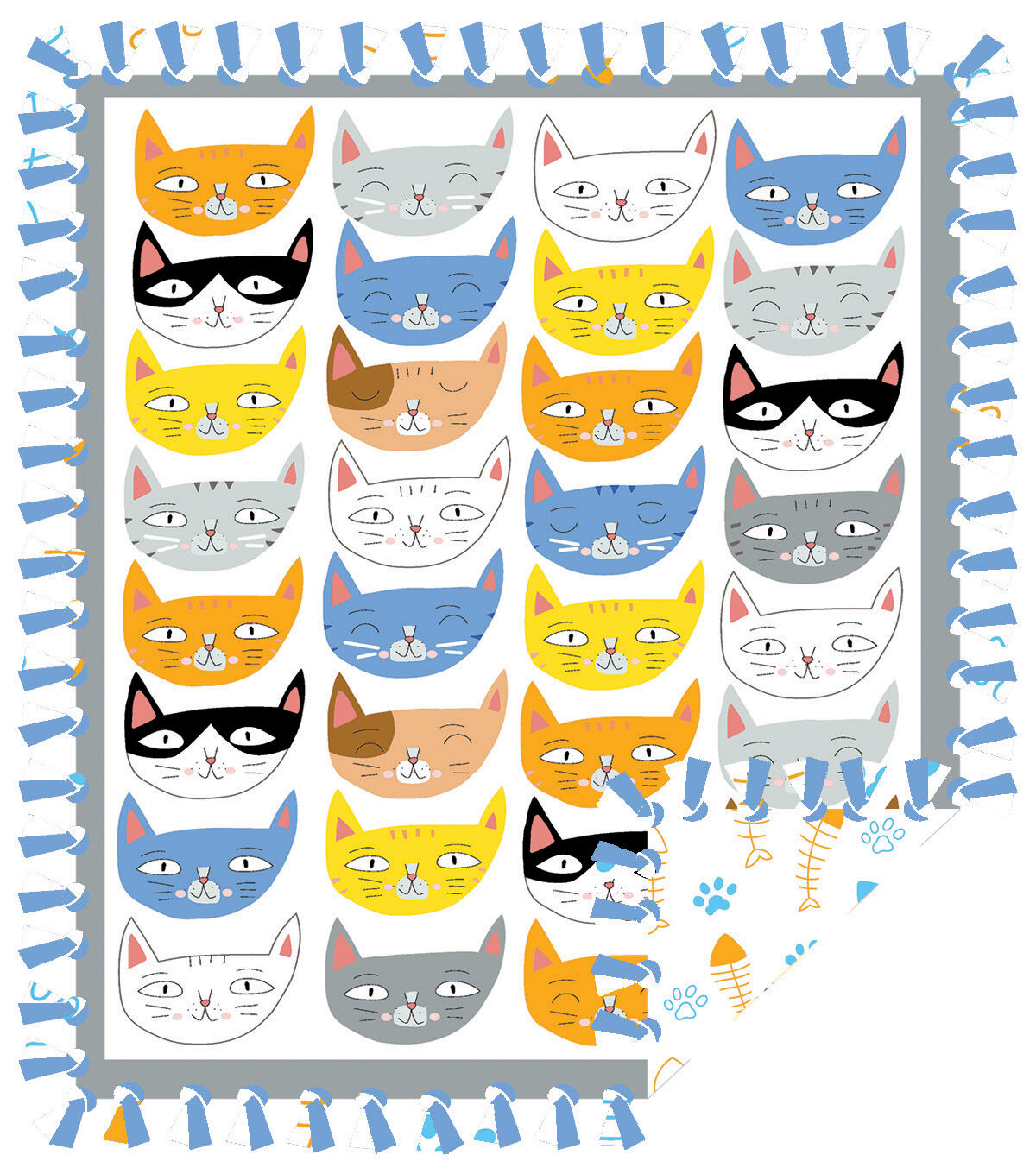 48" Wide Cat Faces No Sew Fleece Blanket