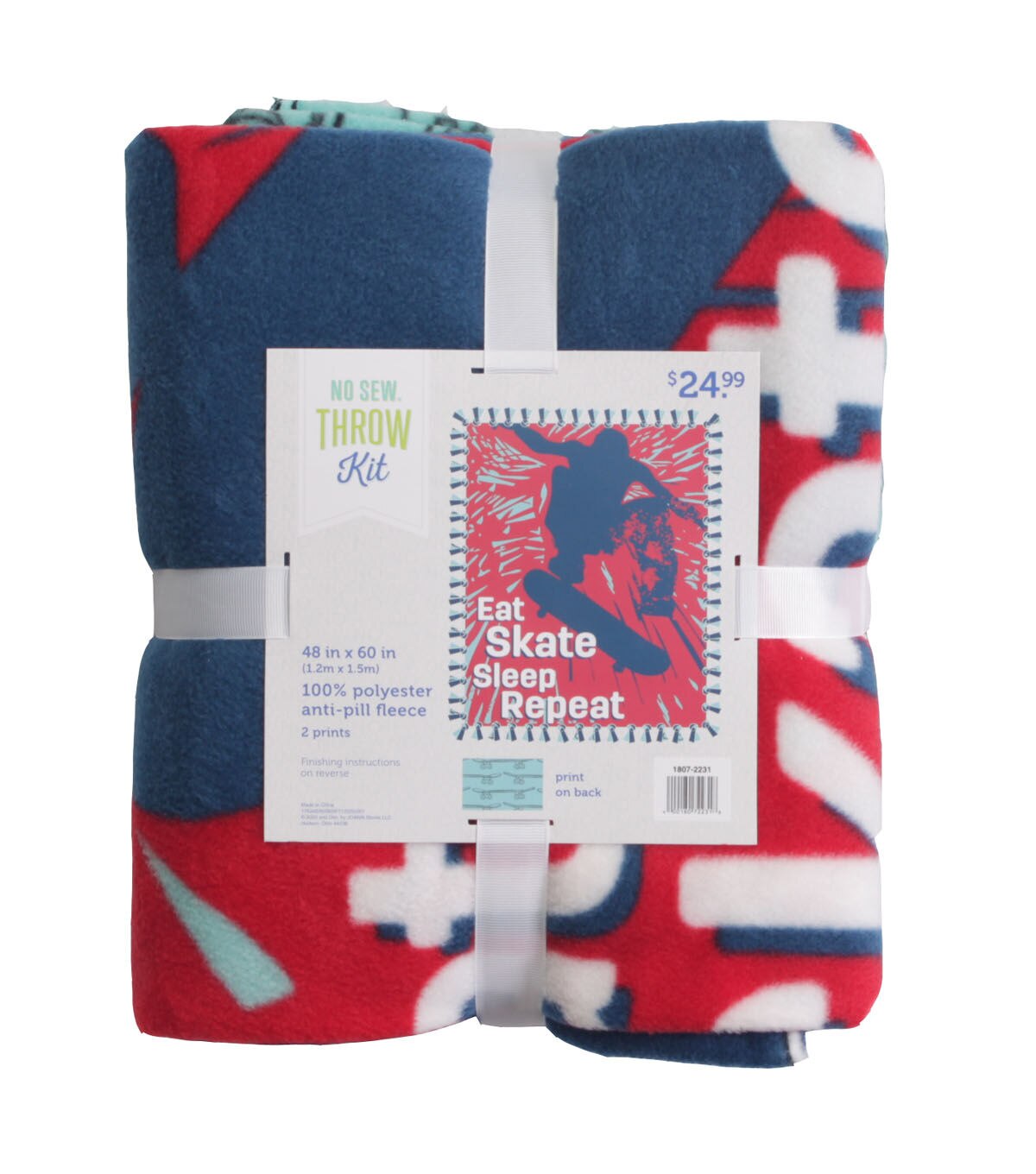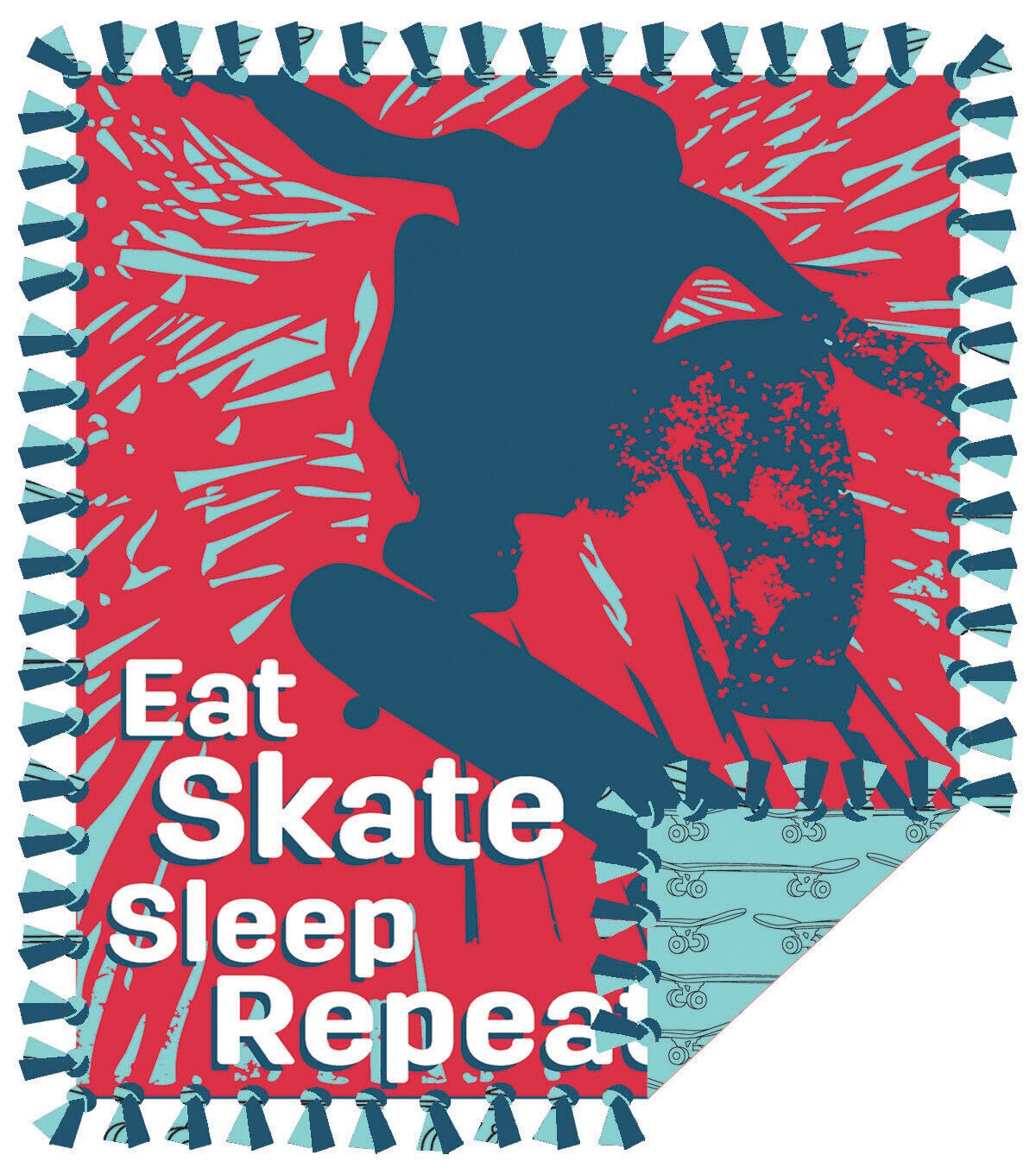 48" Wide Eat Skate Sleep Repeat No Sew Fleece Blanket