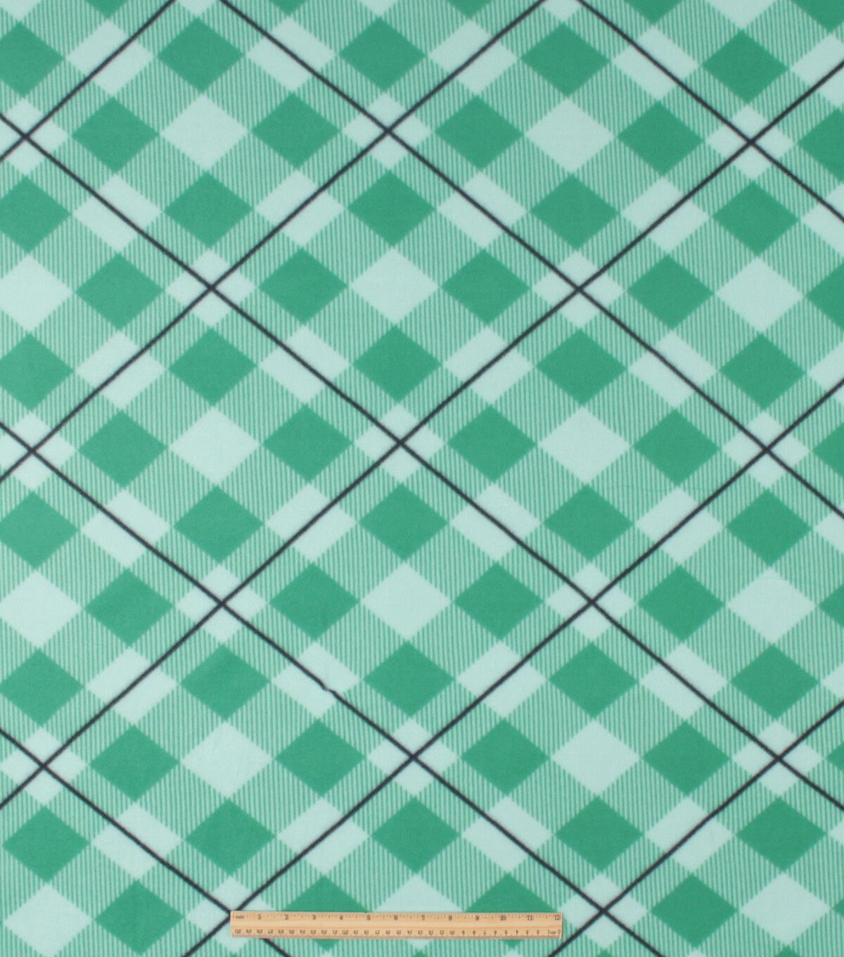 48" Wide Green Diagonal Plaid No Sew Fleece Blanket By Make It Give It