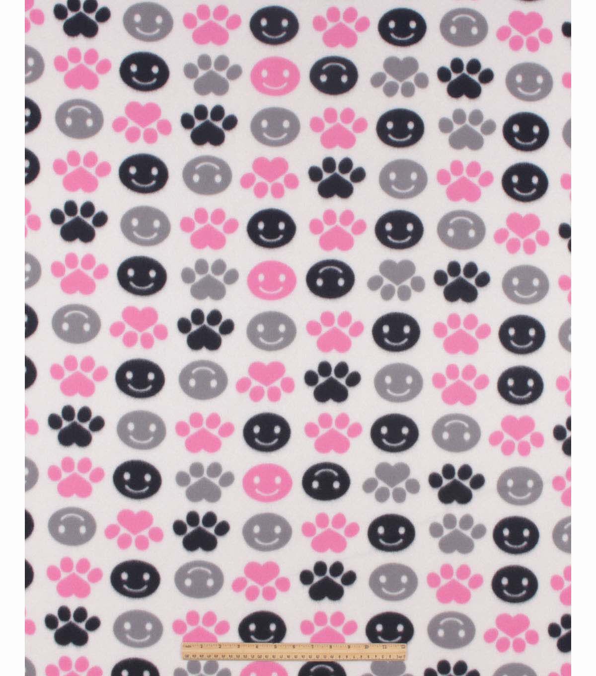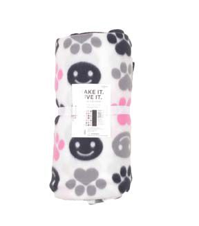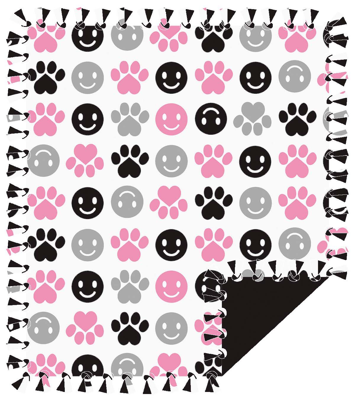 Cozy up with the 48" Wide Paw Prints on White No Sew Fleece Blanket by Make It Give It