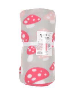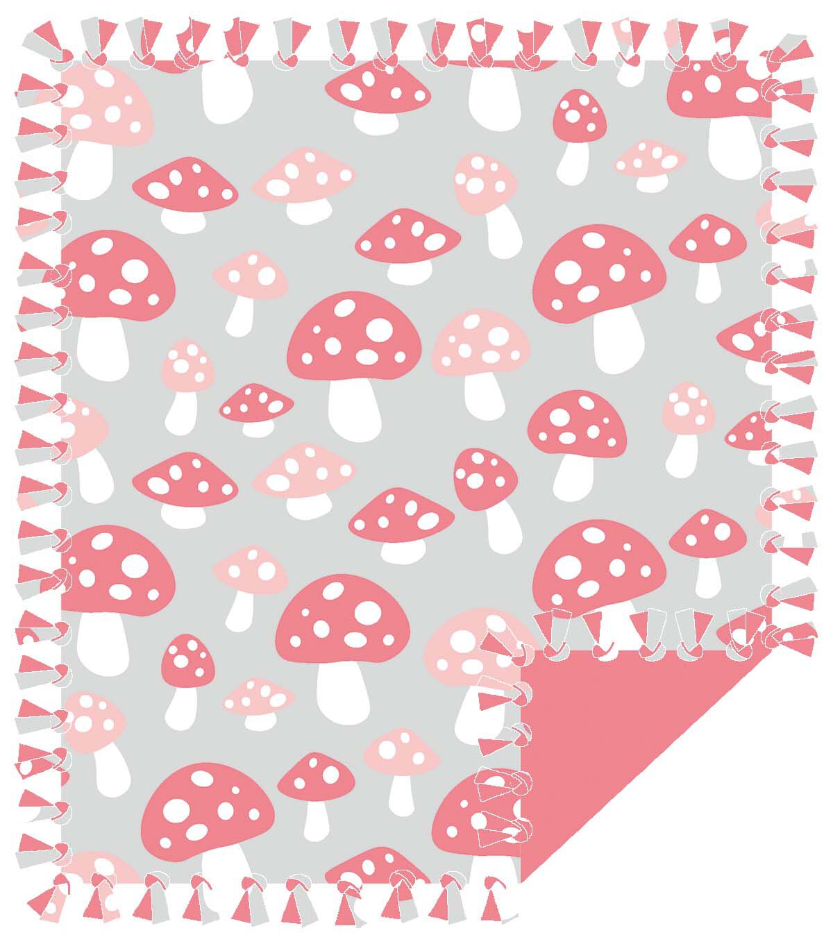 Cozy Up with the 48" Wide Pink Mushrooms No Sew Fleece Blanket by Make It Give It