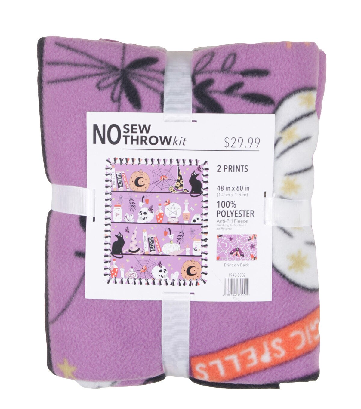 48" Wide Purple Witch Icons on A Shelf No Sew Fleece Blanket