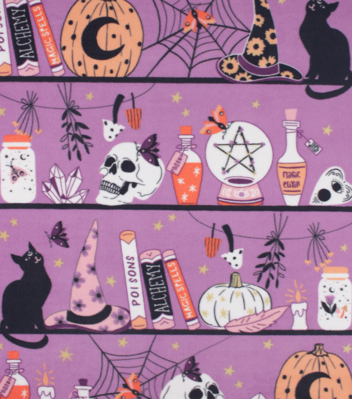 • 48" Wide Purple Witch Icons on A Shelf No Sew Fleece Blanket