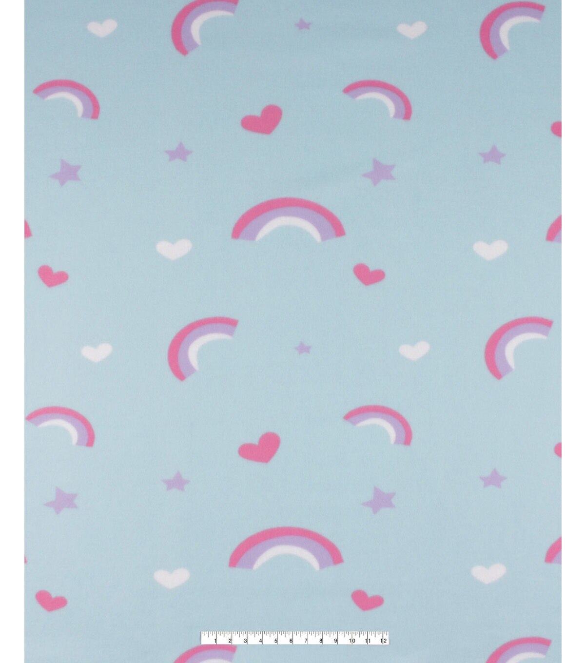 Bring vibrancy and warmth to your space with this fleece blanket decorated with rainbows and hearts. Made from 100% polyester and measuring 48 inches in width, it's a cozy reminder of love and positivity.
