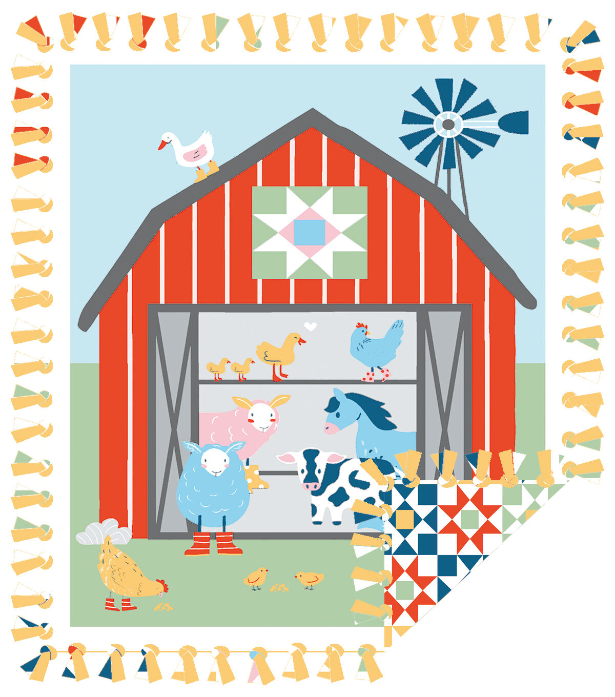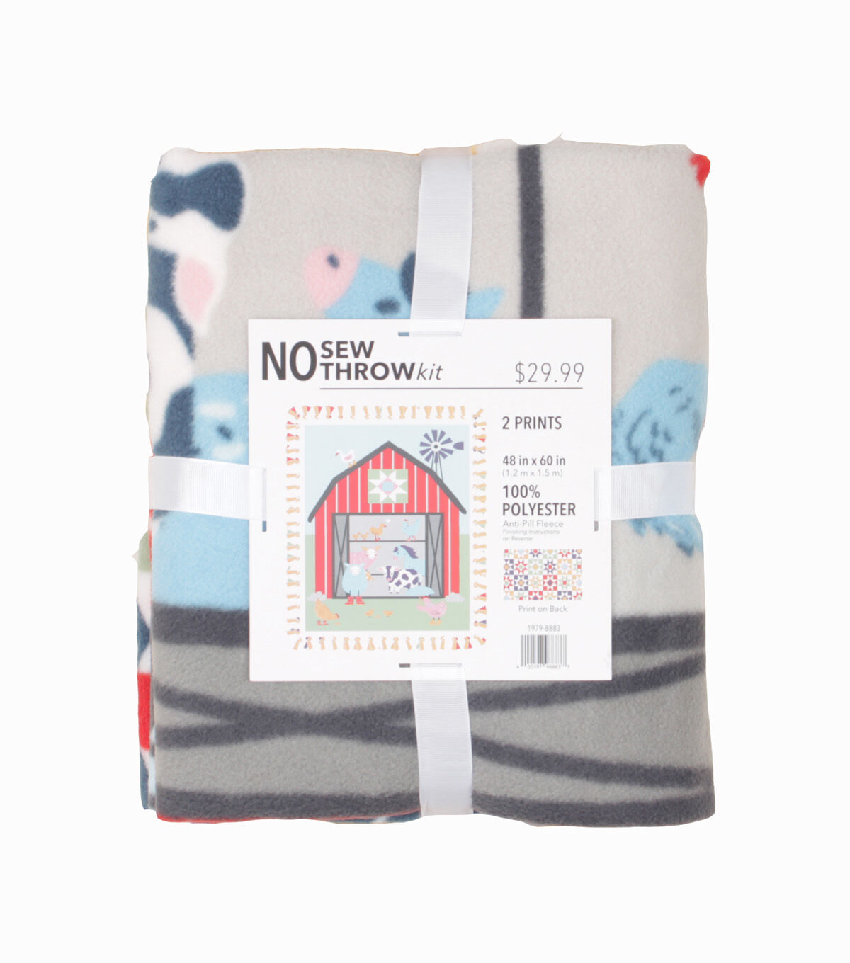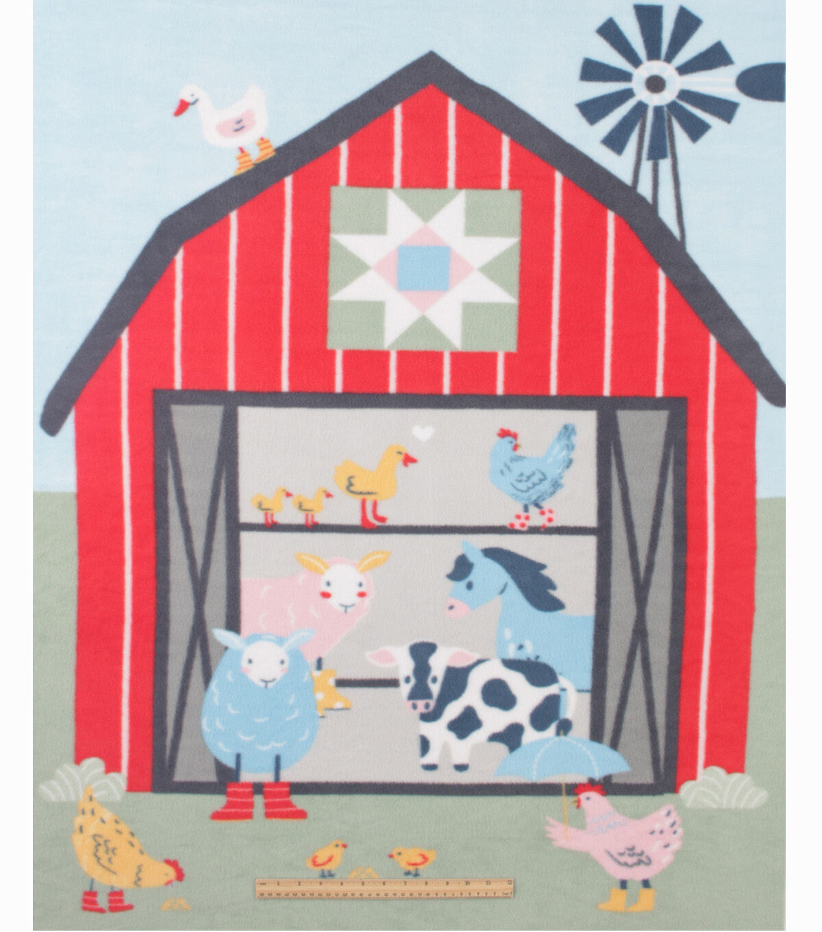 • 48" Wide Red Animal Barn No Sew Fleece Blanket
