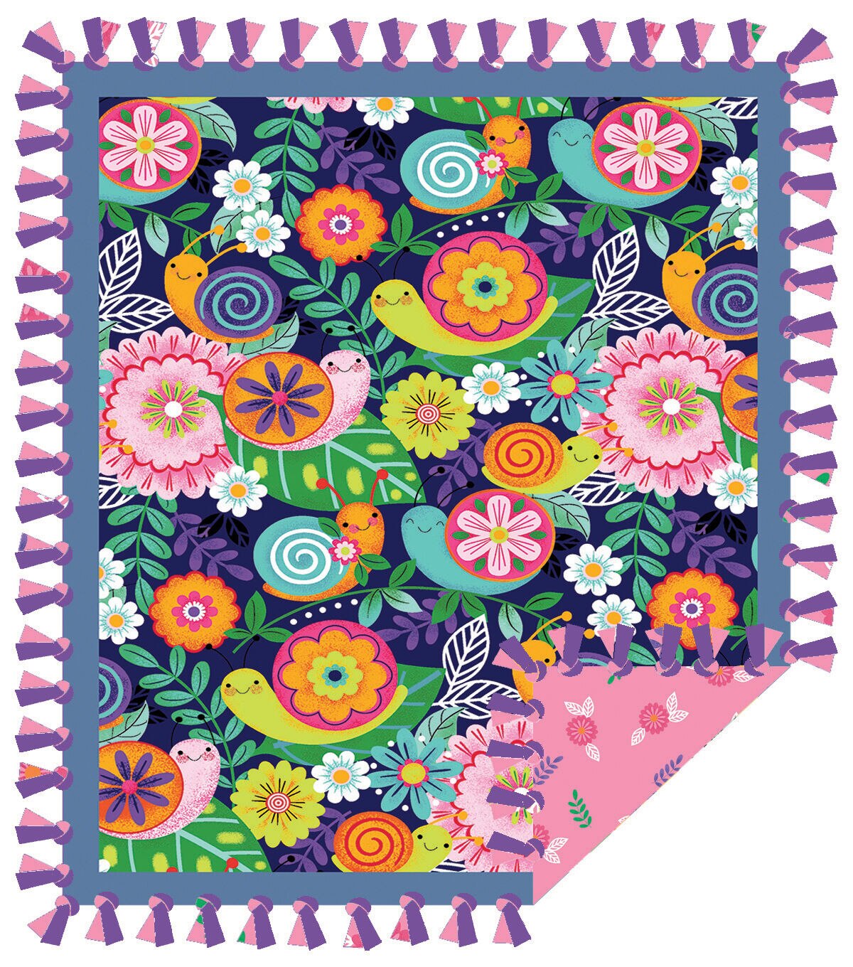 • 48" Wide Snail & Floral No Sew Fleece Blanket