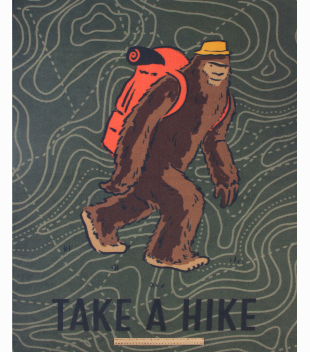 • 48" Wide Take a Hike Bigfoot on Dark Green No Sew Fleece Blanket