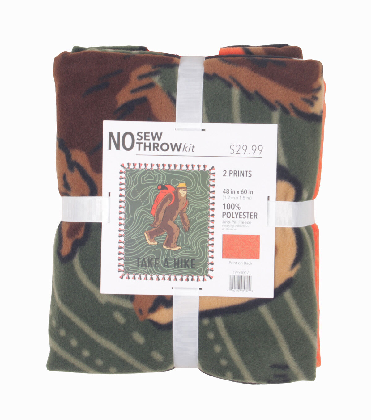 48" Wide Take a Hike Bigfoot on Dark Green No Sew Fleece Blanket