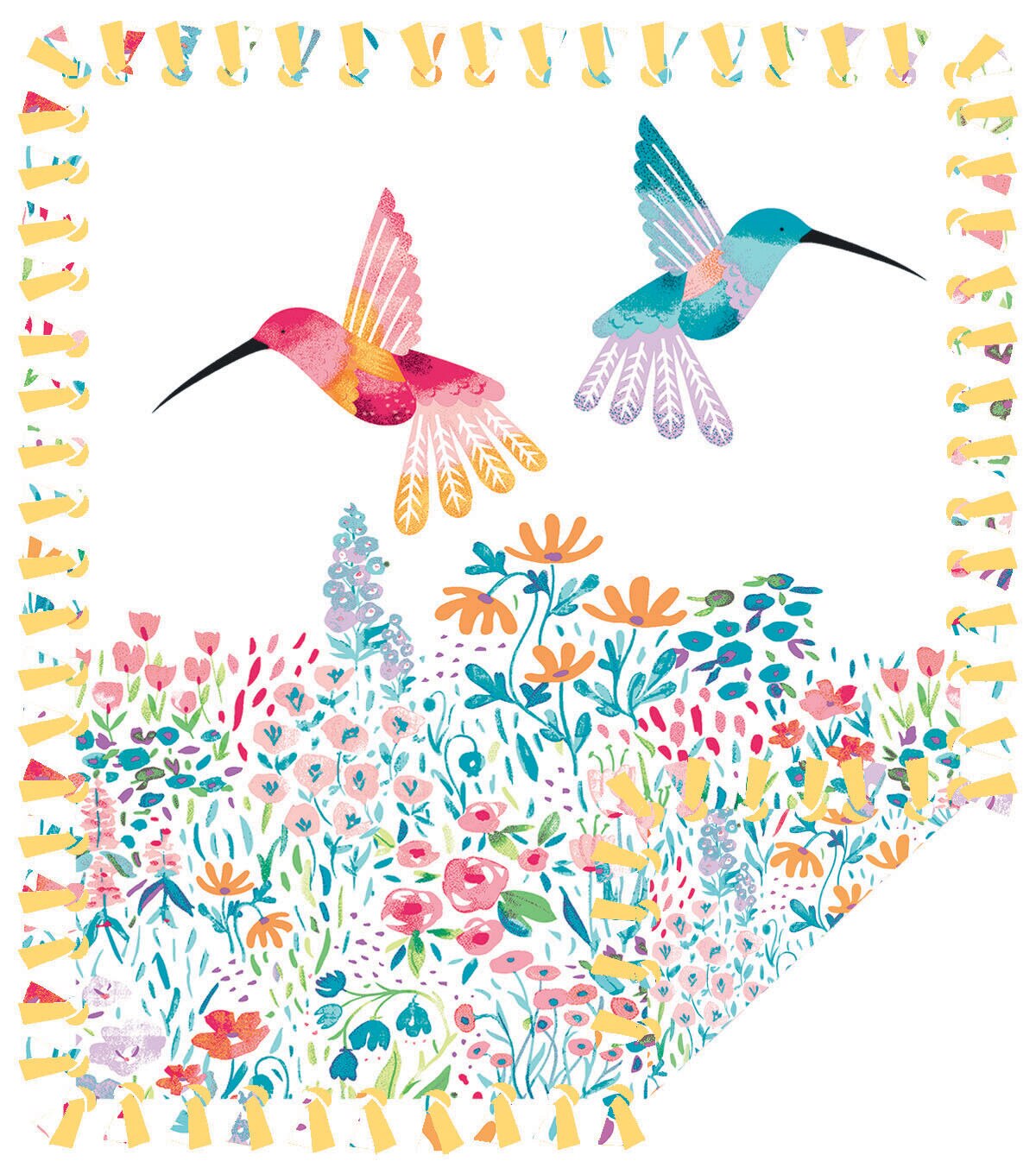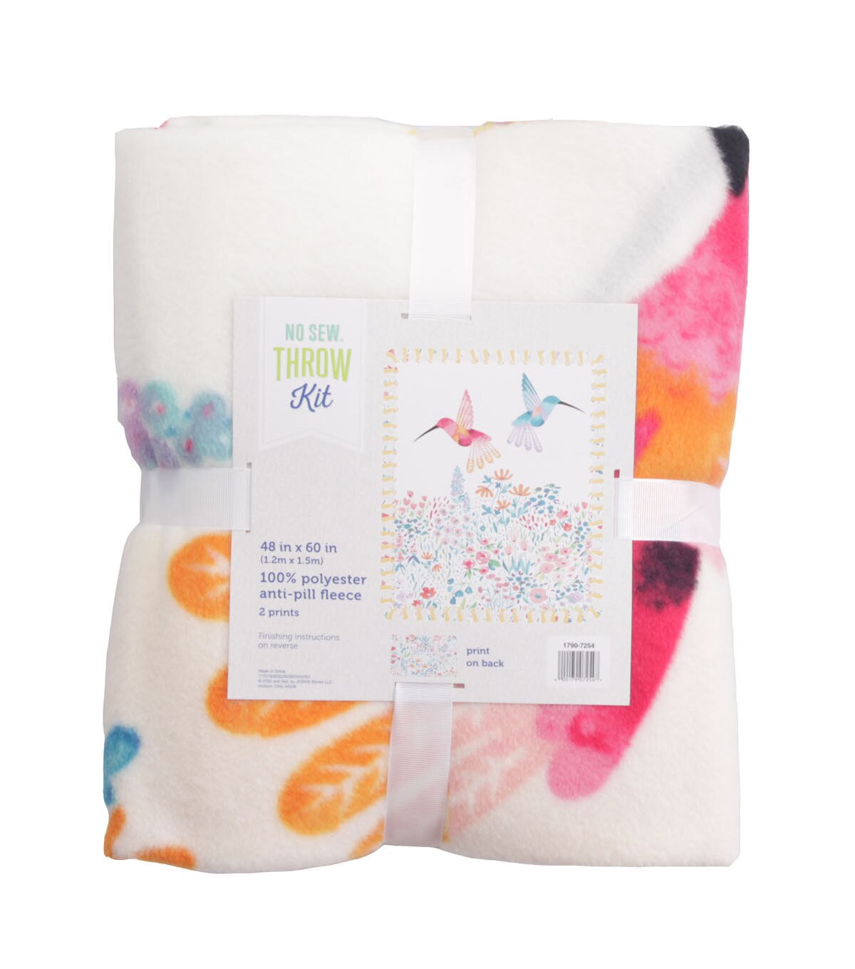 • 48" Wide Watercolor Birds & Floral No Sew Fleece Blanket