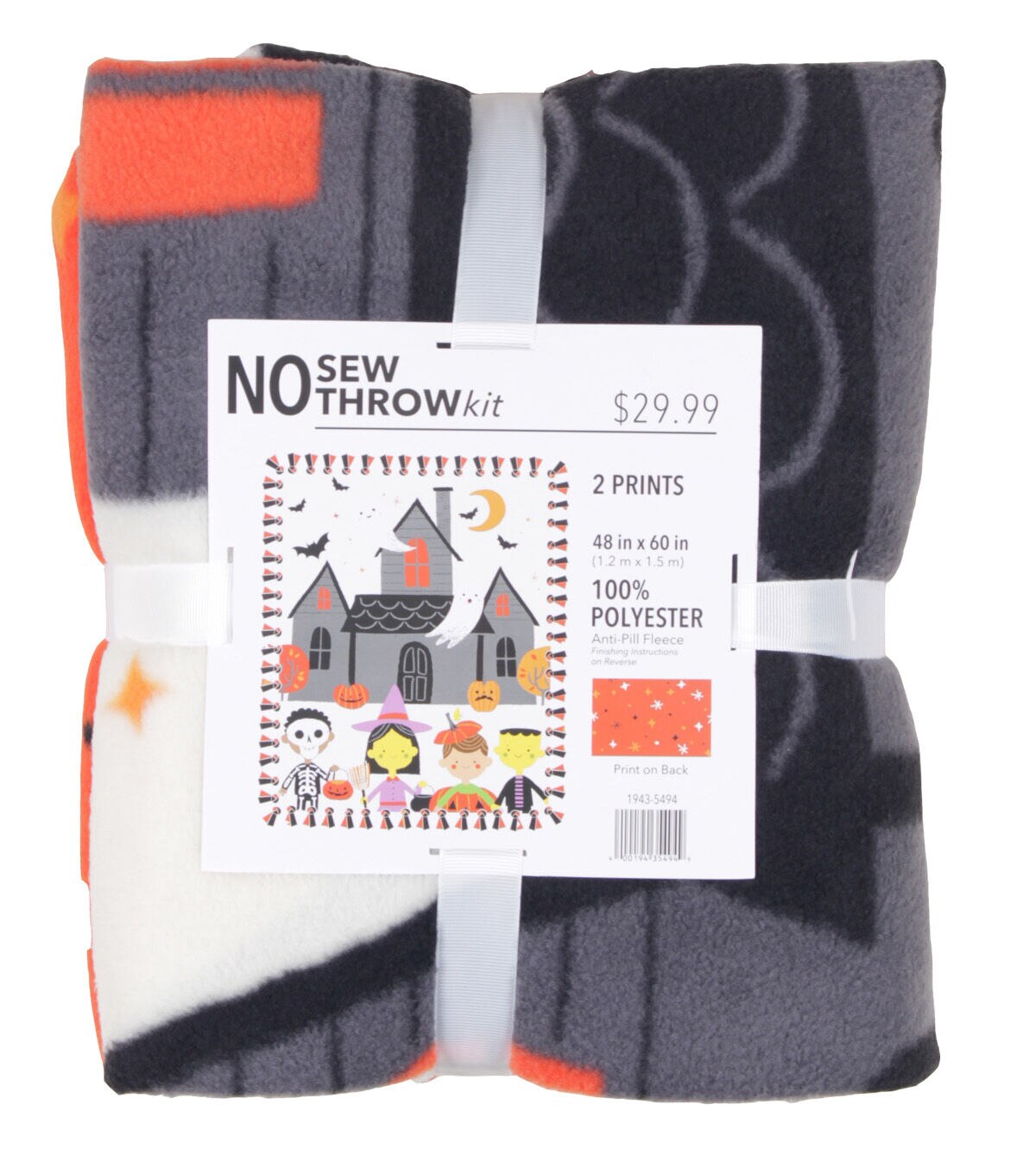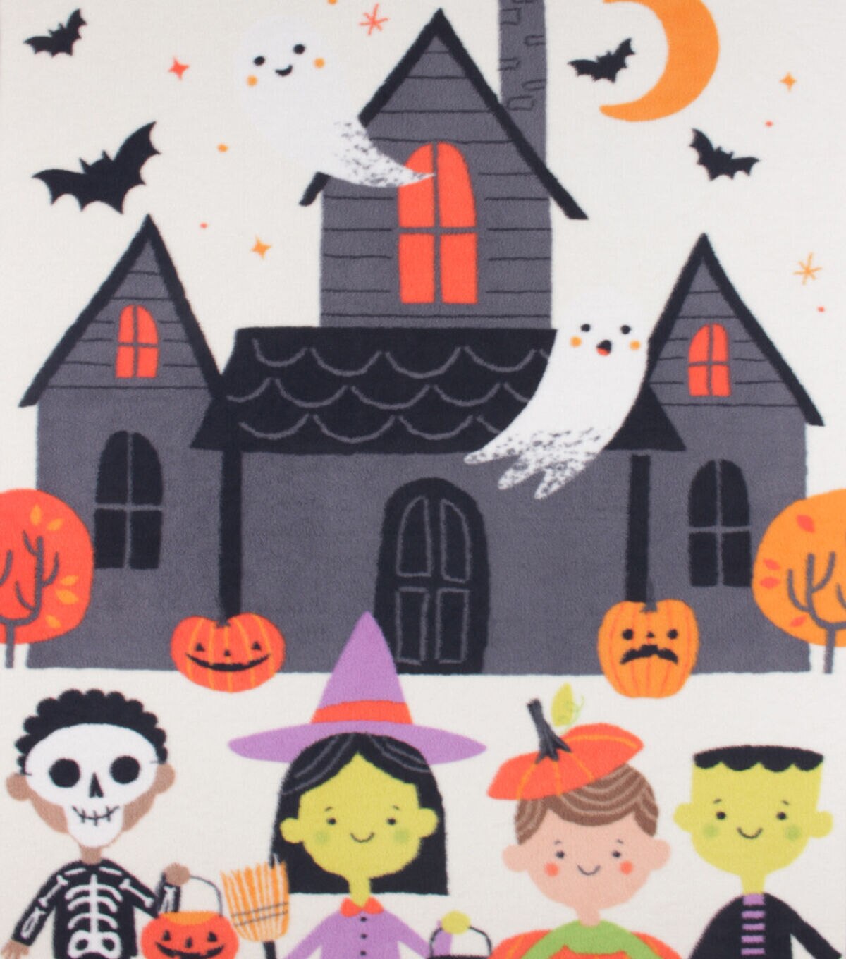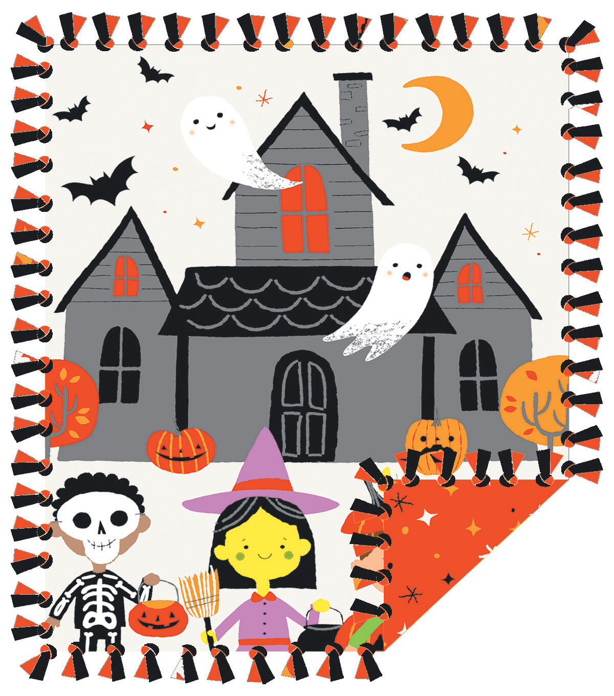 • 48" Wide White & Orange Trick & Treaters No Sew Fleece Blanket by POP!