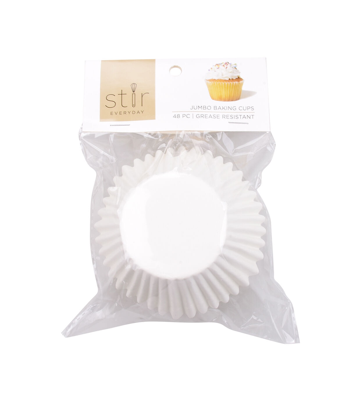 These jumbo baking cups are ideal companions for your cupcakes and muffins. The greaseproof surface is heat-resistant and nonstick for easy baking. These sturdy cups are also great for holding small snacks, like candies and nuts. Their classic white color is suitable for every occasion, from birthdays and holidays to weddings and showers.