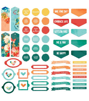 61 pieces of thin non-adhesive backed chipboard shapes. This set includes tags, banners, labels, circle shapes and hearts. These pieces can be added to all your crafting projects. Imported.