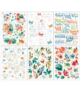 6 sheets of rub-on transfers. Each sheet measures 6x8 inches and is loaded with various watercolor images of florals, butterflies, splashes and text. They can be applied to a variety of surfaces for a unique and beautiful effect. Imported.