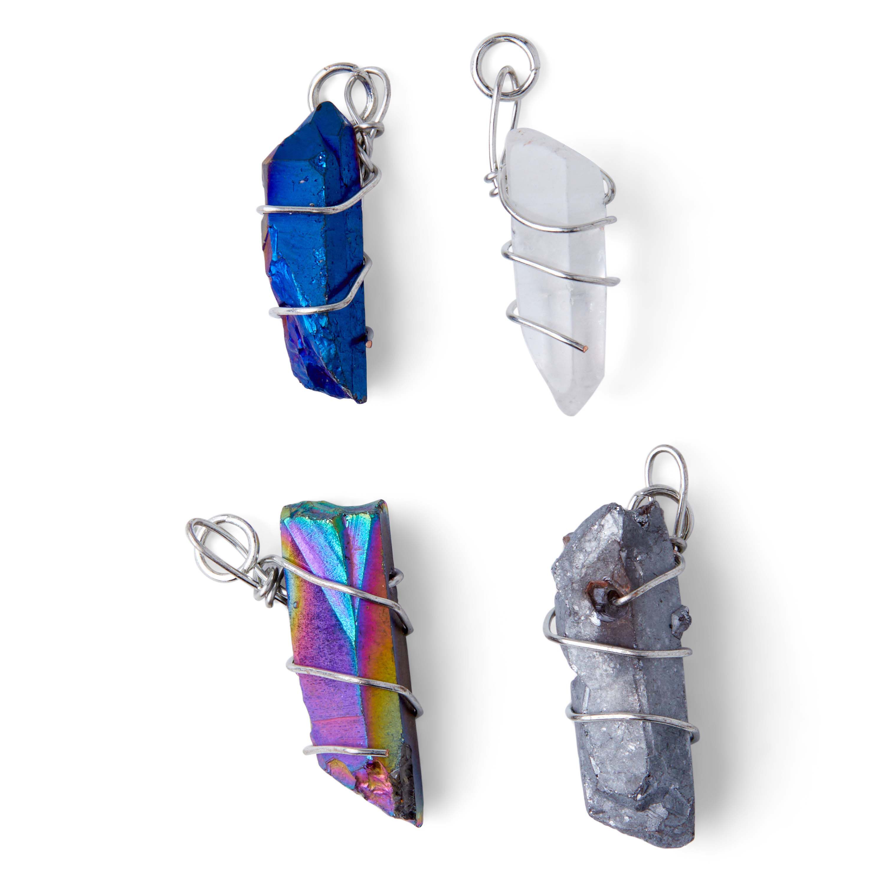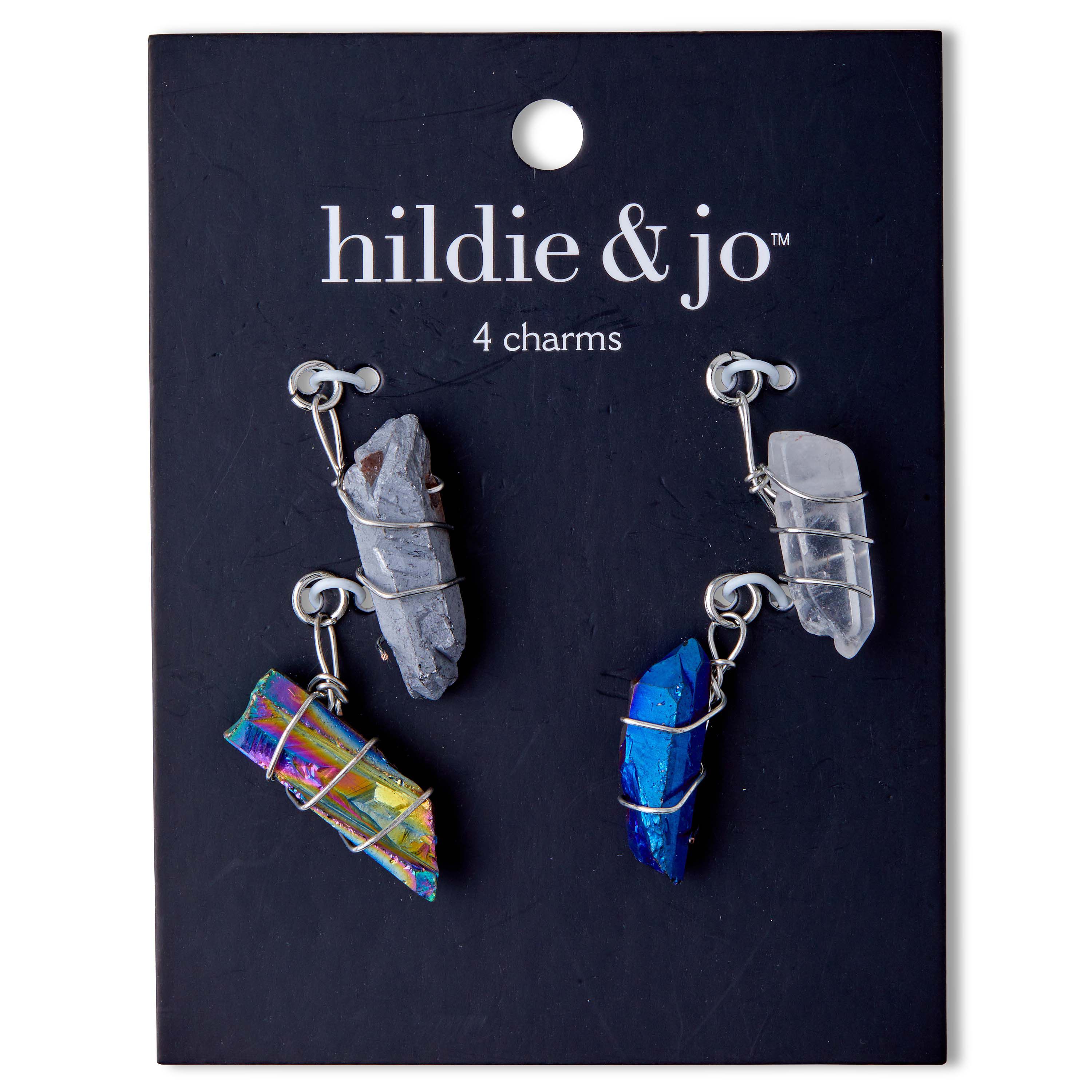 Bold and edgy, the hildie & jo Hexagon Column Stone Charms perk up the look of your jewelry. These rock crystal charms come in a set of four, each of which has a distinct stone look wrapped with silver wire.