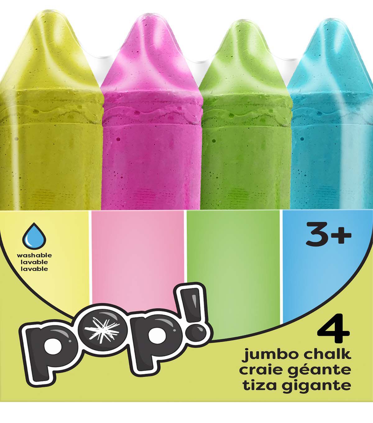 Let your creativity run wild with the 4ct Summer Jumbo Sidewalk Chalk by POP! These jumbo chalks are perfect for outdoor playtime and come in 4 vibrant colors - yellow, pink, green, and blue - that will make your artwork pop. Whether you're drawing hopscotch squares or creating a masterpiece, these washable chalks will provide endless fun for kids and adults alike.