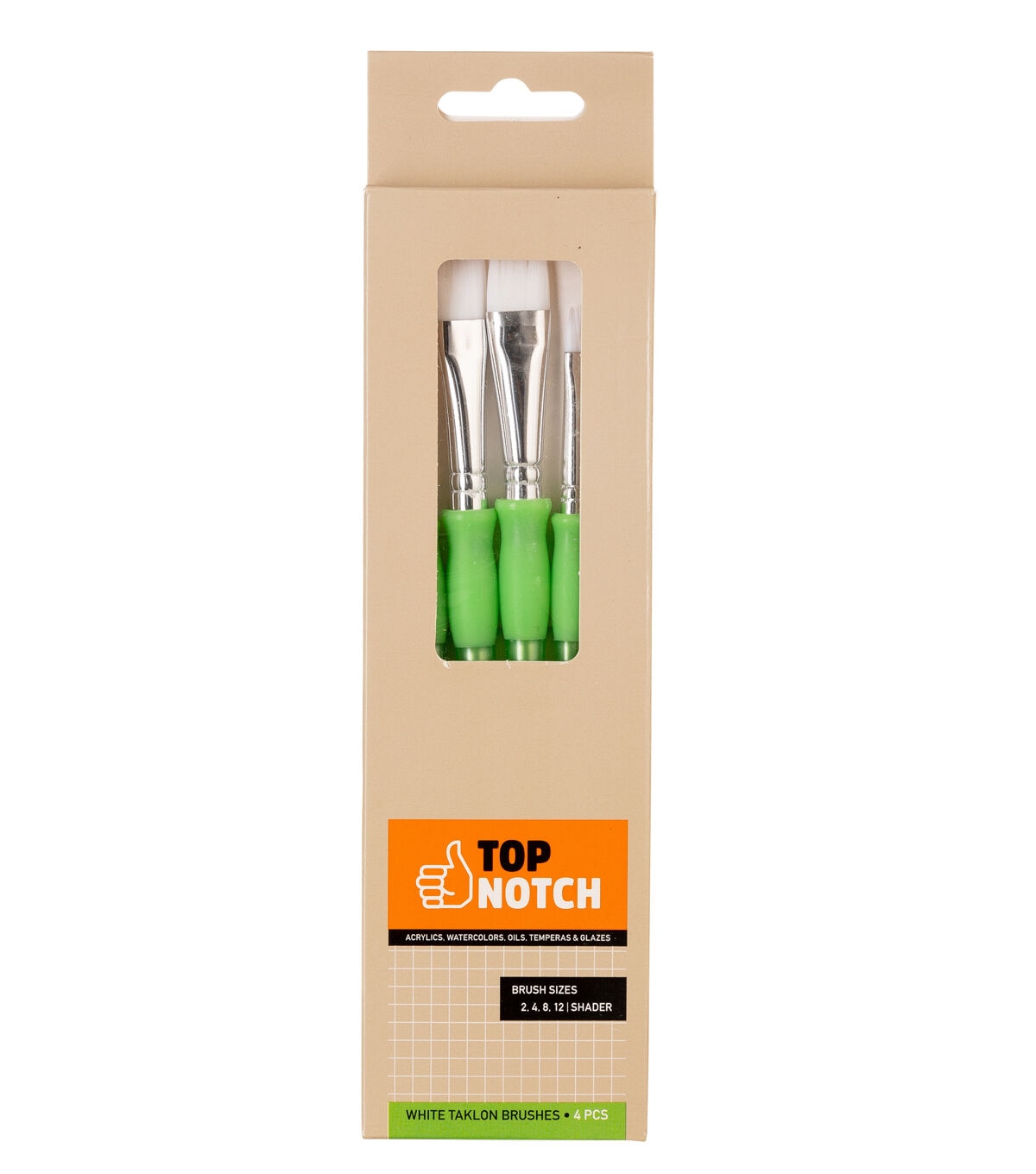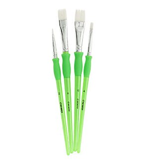 This set features four Flat Shader brushes with white taklon hair and plastic handles. Sizes include #2, #4, #8, and #12.