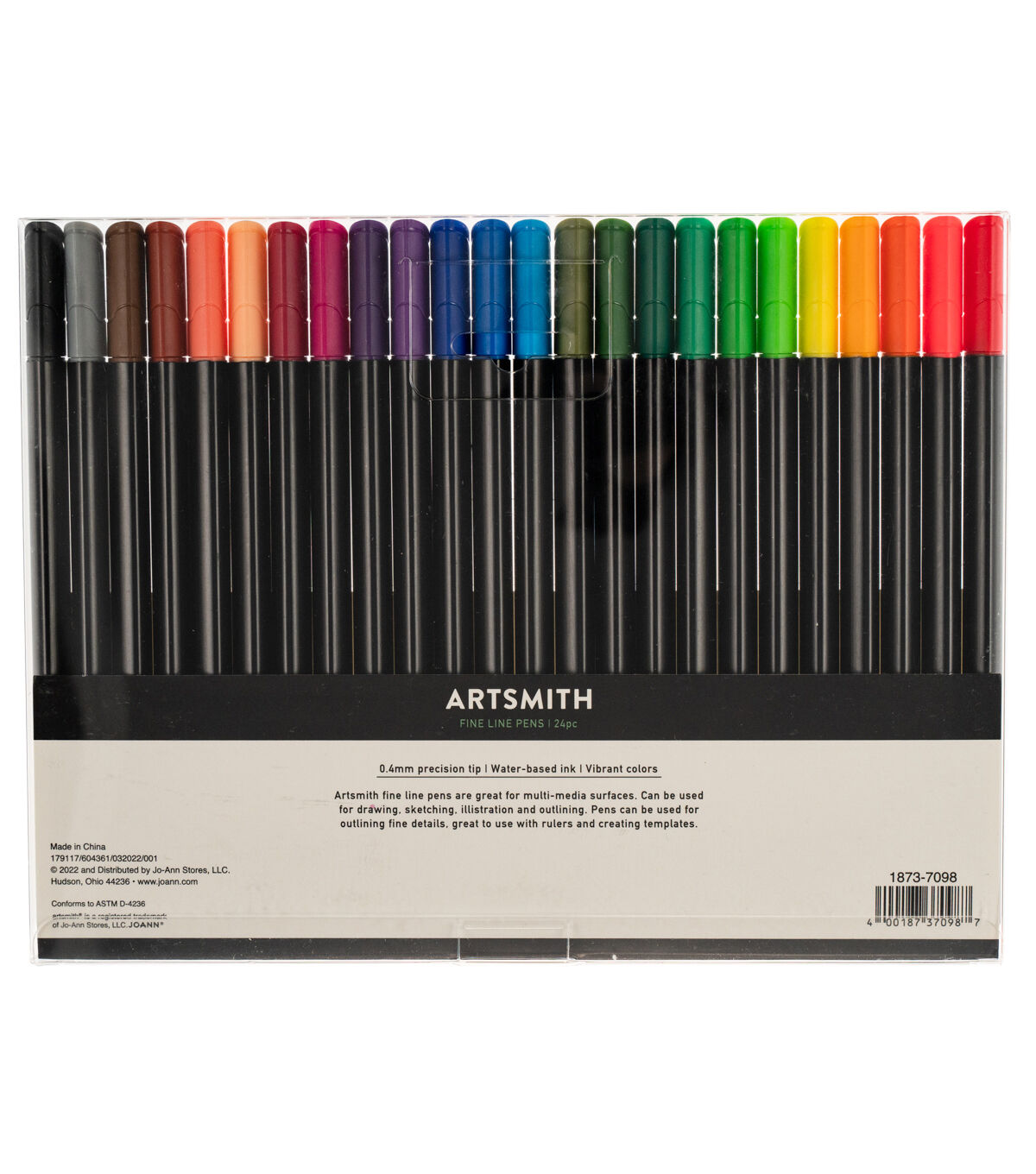 These sets of fine point (.4mm) pens feature a triangular comfort-grip barrel and water-based ink in a vibrant array of colors, perfect for drawing, illustrating and coloring on paper, board or canvas.24 colors