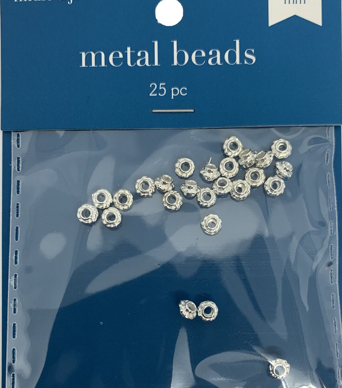 Make the hildie & jo Round Cast Metal Spacer Beads - Silver a part of your next DIY jewelry project. The beads sport a silver tone and come with smooth edges and a ridged design in the center. Team them with other beads to add color, texture and dimension to your project.