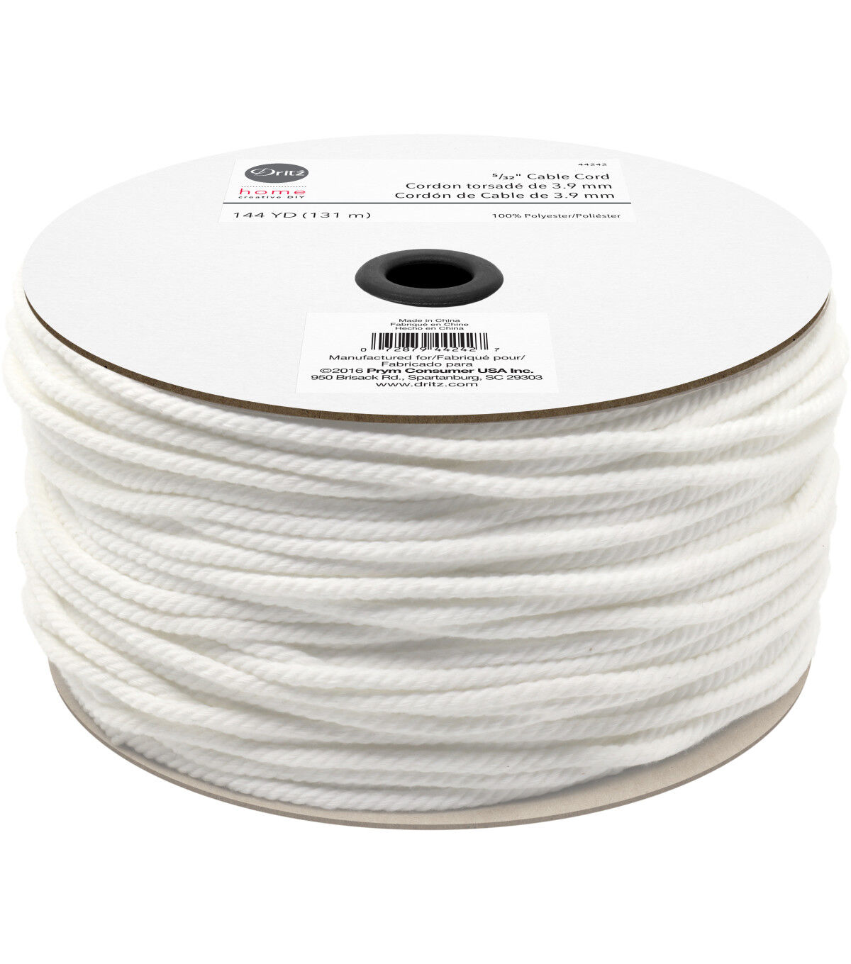 Complete your cording activities with the Dritz 5/32'' Cable Cord White. This 5/32-inch white cable cord which is ideal for all heavy-duty cording requirements. Use it for your upholstery, outdoor gear, sportswear or other home decor items. Made of 100% polyester, this cable cord is machine washable and dry cleanable. The item is sold by the spool.